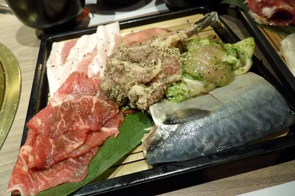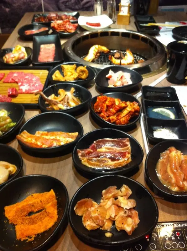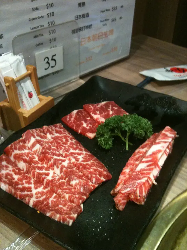 。雖然遲咗入座,但係到3:00pm都要埋單,不過就無趕你走,隨你坐,只係侍應忙於清場,無乜人理你!個一人前午膳,生肉指定有薄燒安格斯牛扒、法式香草羊扒、鹽燒薄牛舌、意大利香草雞同祕製魷魚鬚,一份一份上,無得添加,望落感覺份量唔多,樣樣嘢少少咁,但夾埋一餐飯有咁多餸其實好夠數。而鹽燒西班牙黑豚肉、白飯、麵豉湯、甜品就係任食部份,基本上係可以無限追加。