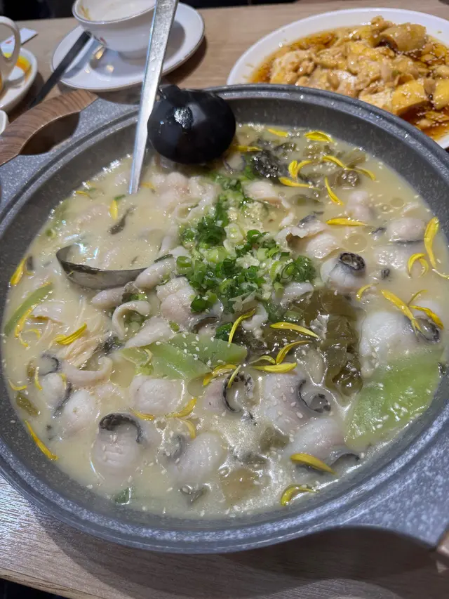 假日一家人去荃灣逛街,夜晚在街市附近見到呢間餐廳都適合一家大細,便決定食埋晚飯再回家。雖然餐牌有任食放題,但因為同行有小朋友,所以叫小菜適合些。自選二人套餐:可以選酸菜魚/烤魚/雞煲、一份小食、一份青菜。酸菜魚(不辣):份量很足夠,酸菜的清爽與滑嫩的魚片完美結合,味道一流👍🏻口水雞(不辣):難得可以食到不辣的口水雞,雞很滑,芝麻香氣撲鼻,搭配花生的酥脆,令人回味無窮。蠔油娃娃菜:醇厚的蠔油滋味渗透娃娃菜,很入味。沙嗲金菇肥牛煲:沙嗲醬香氣撲鼻,搭配鮮嫩牛肉與金菇,湯汁濃郁,口感滑順。…查看更多