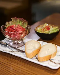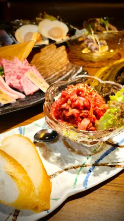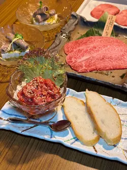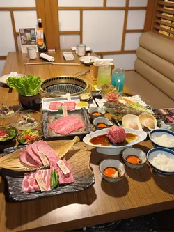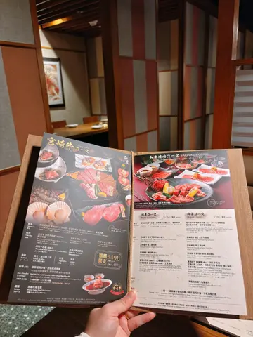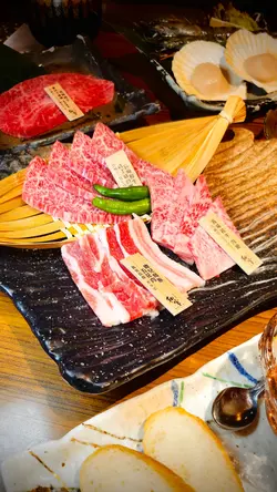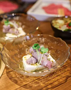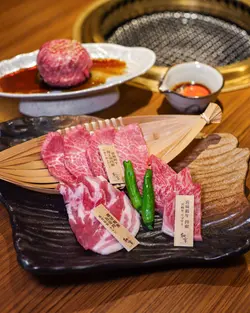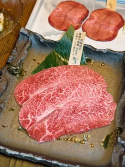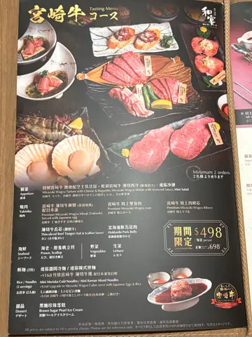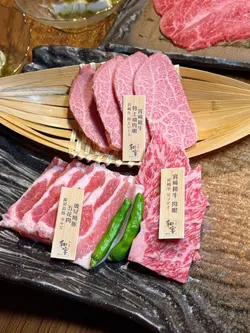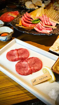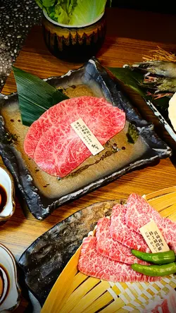 两度荣获米芝莲指南推介,质素绝对无令我失望。今次品尝宫崎牛海鲜盛宴,当中严选有「日本一」美誉嘅宫崎牛多款珍稀部位。前菜以先有「宫崎牛他他配芝士及法包」及「轻涮薄切西冷配海苔汁」。特别喜欢前者,和牛他他非常鲜嫩,配上芝士碎及烤烘过嘅法包,味道同口感都非常丰富。烤肉部分包括薄切牛板腱、特上肩肉眼、肉眼、薄切牛舌芯、鹿儿岛豚五花。我最喜欢牛板腱,油香肉嫩。配上日本蛋,寿喜烧风味非常美味~肩肉眼油花丰富,宁舍甘香,几乎入口即化。牛舌芯好爽脆,配上盐葱汁一齐食,喜欢~有不同酱汁可以选蘸,另外可以选配生菜食,减低油腻感。除此之外仲有大大只海老同肥美帆立贝~店员专业嘅代烧服务令每款肉都呈现出最佳状态,非常欣赏。主食原本可选盛冈冷面或韩式拌面,但我地额外加$168升级宫崎牛薄牛块配日本蛋同白饭。薄牛块原本堆砌成一个大牛肉波波咁,烤至甘香后,再加入日本蛋黄,同日本米饭拌匀,真系一流享受~最后来一杯黑糖珍珠雪糕,冰凉解腻,而且啲珍珠好好食 !…查看更多