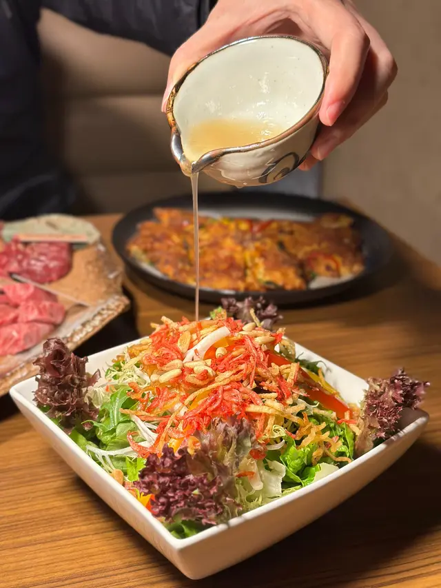 位于尖沙咀广东道的「和宴」,系一间主打日式烧肉的餐厅🍴店内装修雅致舒适,食材选用4届荣获「日本一」殊荣的特上宫崎和牛🐮最近推出咗全新《宫崎和牛海鲜十三品盛宴》套餐✨期间限定价格$498/位,正价$698/位,套餐需2位起迷你沙律