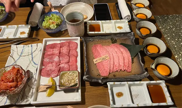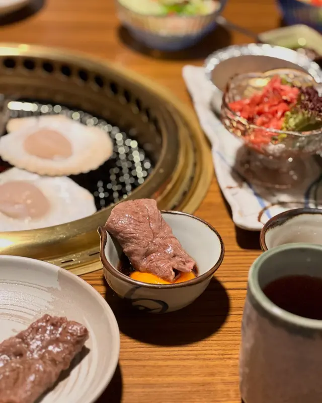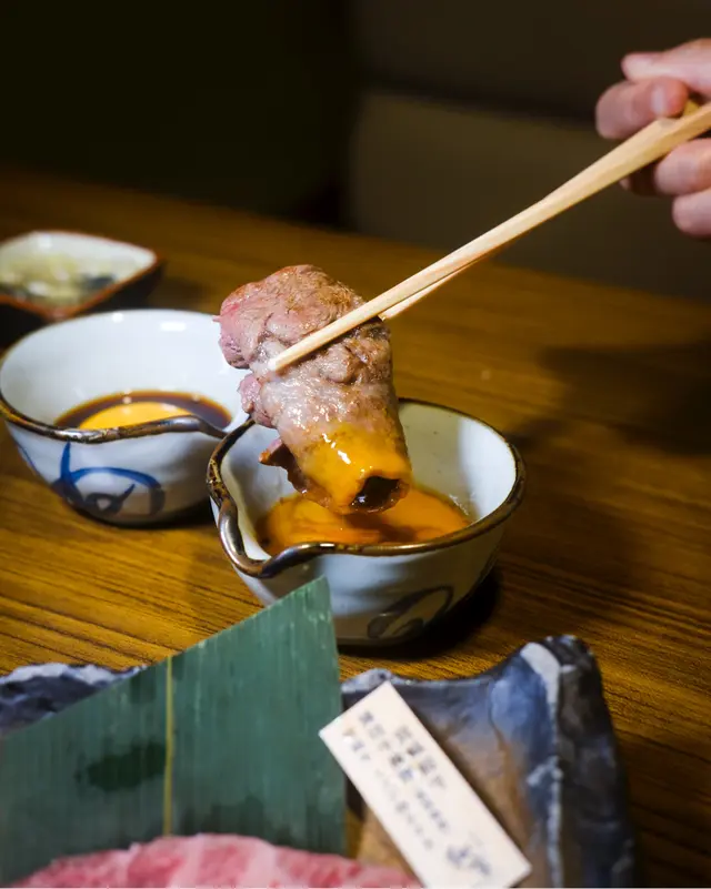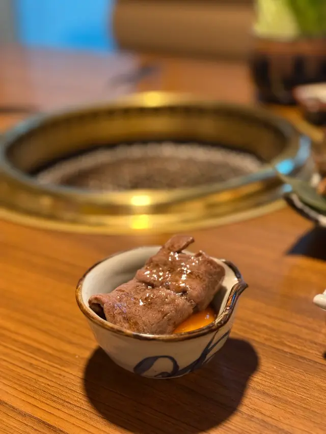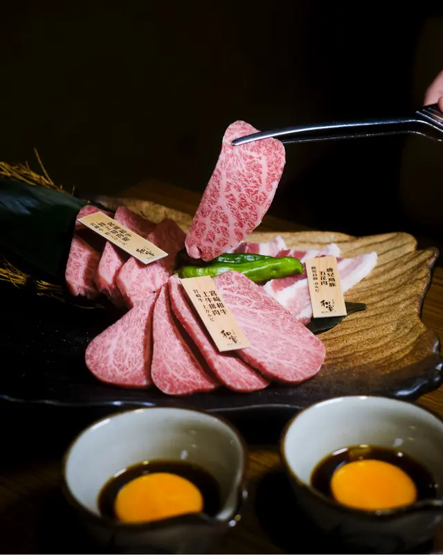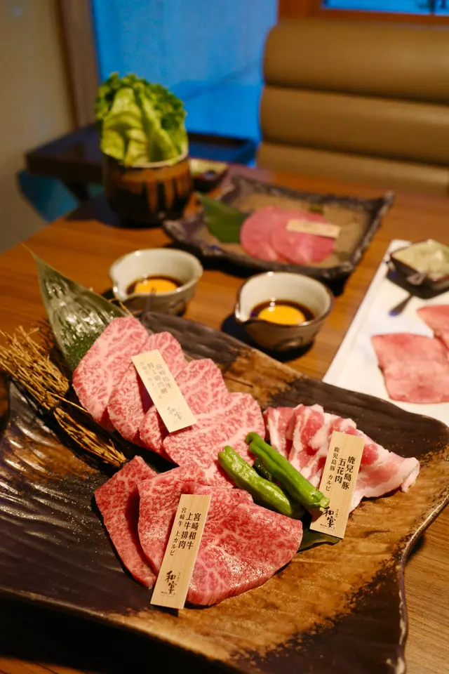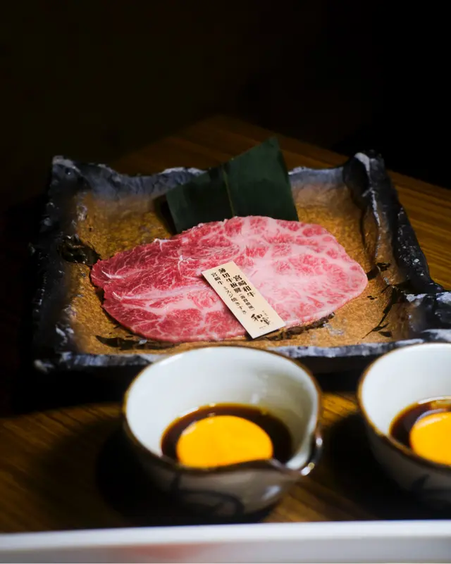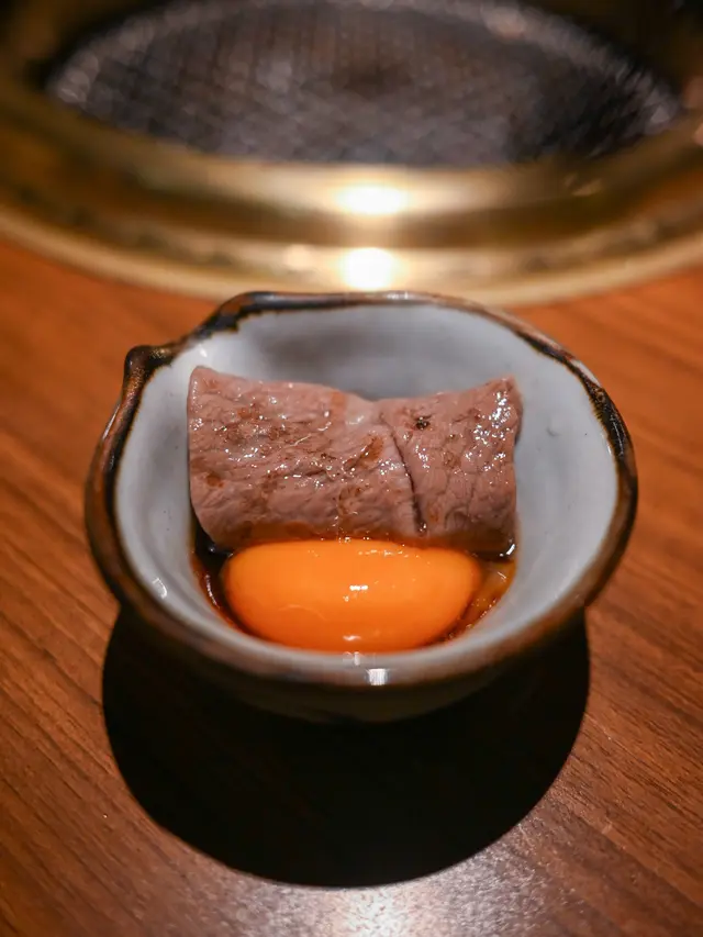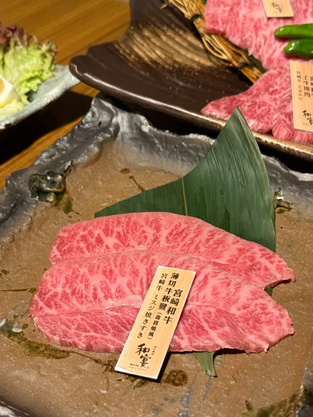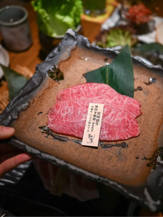 店員會幫忙燒牛舌芯,火候控制得啱啱好,配上秘製的鹽蔥汁一齊燒,更添滋味宮崎和牛薄切牛板腱(壽喜燒風)配日本蛋