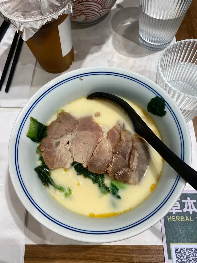 今晚做完facial,落街路過見到「和府撈麵」門口大大隻字寫住「養生」,即刻被吸引住,決定入去試下。揀咗個超值套餐,有香草蕃茄湯麵、爆汁脆皮燒雞,再配杯白桃烏龍茶。湯底用當歸煮,入口香甜帶少少藥材味,飲完真係暖晒成個人,血氣好似通晒咁,感覺好補。不過補得滯都有代價——食完我成個人好眼瞓,估計血糖都升咗上去。麵有三種可以揀,包括蕎麥、小麥,仲有一款我唔記得咗,我嗰碗麵質感煙韌,掛湯力好,口感唔錯。脆皮燒雞外皮香脆,內裡多汁,咬落有驚喜,唔會乾柴。白桃烏龍茶清香微甜,啱晒解膩。餐廳裝修都唔錯,木系設計簡約有質感,坐得幾舒服。整體嚟講,呢餐食得滿意,特別啱做完facial想養生一下嘅心情,係一個身心都暖笠笠嘅夜晚。查看更多