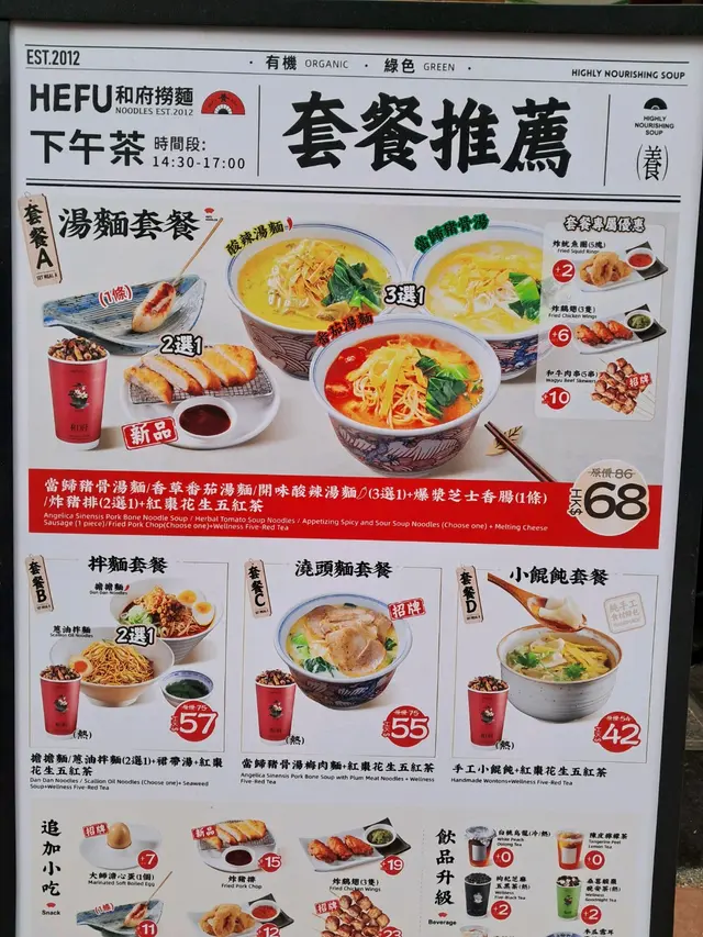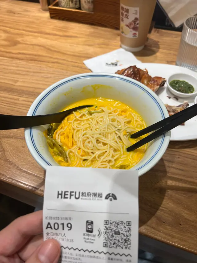 Apologies for the photo - should have taken one prior to eating.Hefu noodles is a big brand in China and has recently made its way to Hong Kong, like many other brands looking for international expansion.The value is decent. Lots of noodles in each bowl. The soup is nice and thick - akin to a Ramen soup base. Soup is served at a hot temperature which is always a bonus. As with any Chinese brand the ordering interface is via the phone/app and payment can be done also on the phone using Alipay CN/HK, Visa etc. Definitely a good spot for a quick meal, especially for a solo meal. 查看更多
