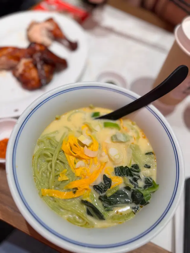 #🐒😋本身係想去食車仔麵見到排哂隊就轉咗食呢間對我嚟講真新開嘅餐廳但老實講餐廳職員安排真係麻麻哋我張飛係B16 我見部機叫到B16行埋去佢竟然話我過咗飛 ._. 真係有啲無奈QR CODE自助落單都唔緊要點解只可以得一部電話嘟到餐廳真係要認真諗下呢啲問題── ✦── ✦ ── ✦ ── ✦ ──ʚ #當歸豬骨湯麵 + #爆汁脆皮燒雞 (半隻) + #枸杞芝麻黑茶 ɞ 個湯麵我覺得有小小驚喜感覺唔似味精湯 麵質都幾好但隻脆皮燒雞就點睇都唔似係半隻燒春雞都無咁細隻 同埋啲肉唔算滑杯黑茶我就建議可以用茶包袋飲個陣成口粒粒小朋友可能真係唔係幾識飲ʚ #手工小餛飩 ɞ 呢碗就普通麻油湯小雲吞無咩特別好食 / 唔好食正常雲吞仔一碗查看更多
