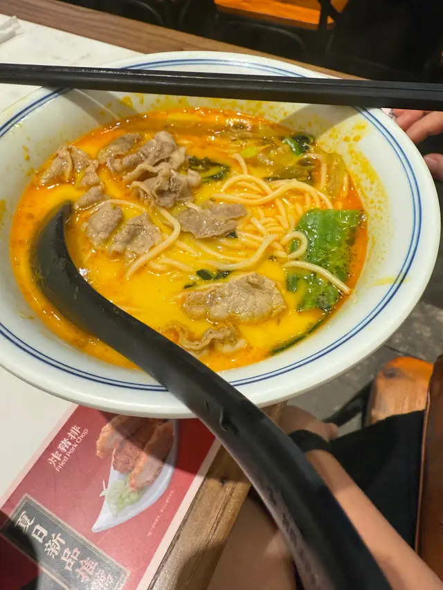 去時代廣場成日都見到呢間嘢,門面幾靚,今日終於同老公去試咗,我哋叫咗兩個套餐,跟兩杯飲品,一杯陳皮檸檬茶,一杯凍奶茶, 飲品唔凍,冇味又好淡,問佢有冇冰居然冇,好彩而家冬天, 如果夏天比杯唔凍嘅檸檬茶同凍奶茶,我諗我哋會即刻走唔食啦, 講返兩個麵,我個酸辣牛肉麵普普通通,冇乜特別,牛肉略鞋,老公叫個當歸豬骨湯拉麵,居然係冇餸嘅,淨係得麵😵, 另外餃子同燒雞都普普通通,今次經驗結論係~唔會再幫襯😪查看更多