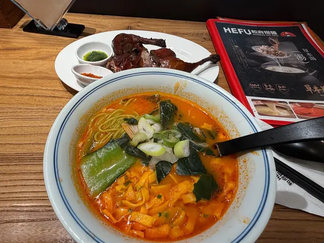 成日經過時代廣場都會見到對面開咗呢間新嘅餐廳,和府撈麵。佢地點好就腳,呢一日朋友話想試吓,所以我哋就一齊去咗食。佢係手機落單嘅餐廳,我揀左當歸豬骨湯梅肉麵。飲品係要另外點。見佢一杯烏龍茶都要$16,我就冇嗌到啦。朋友試咗,覺得就唔係好值。😀講返個麵,湯底係由當歸味偏鹹,麵質呢就有啲似拉麵嗰種,都係有少少粗,唔煙靭嘅,但係又未至於好粉。上面有兩塊好薄嘅豬肉,唔肥,不過真係太薄🤣 整體你碗麵係食唔飽人嘅🧐呢碗麵賣$58 ,如果好食嘅話佢算係好平,可惜質素真係唔係好得,我哋兩個都表示失望🥲 同埋慶幸冇揀貴嘅餐🤭查看更多