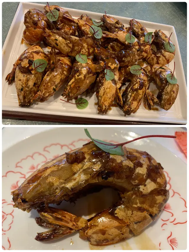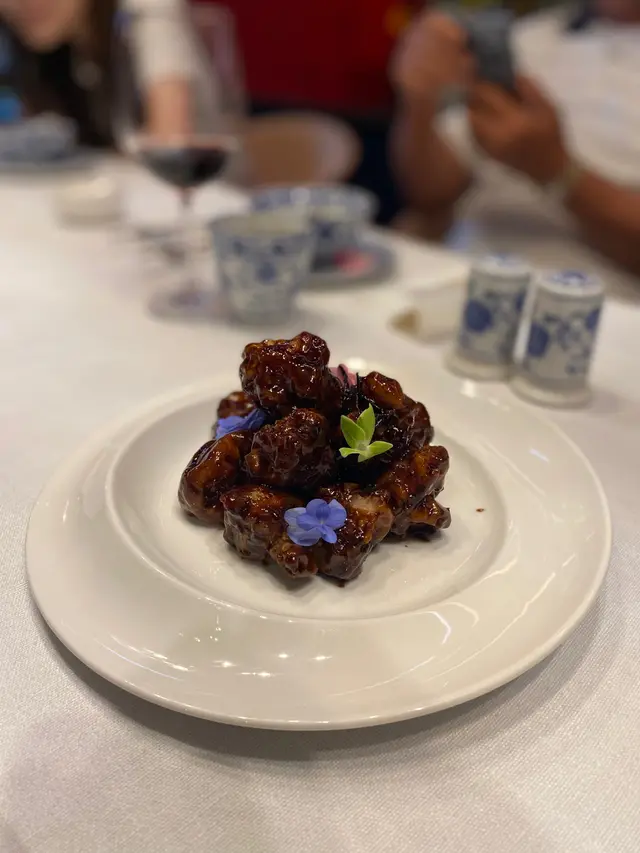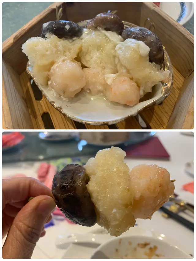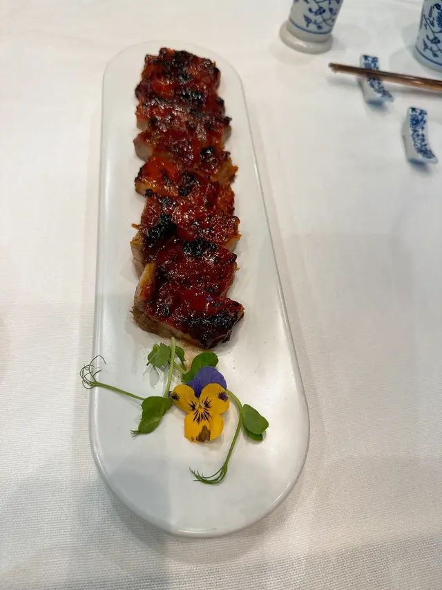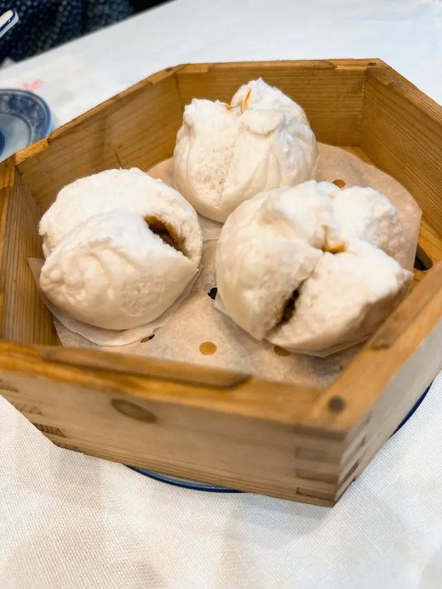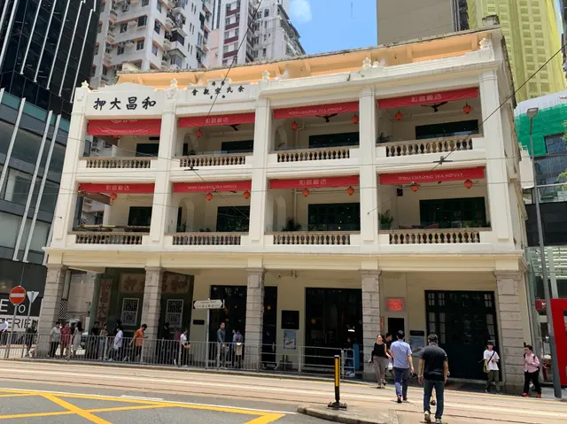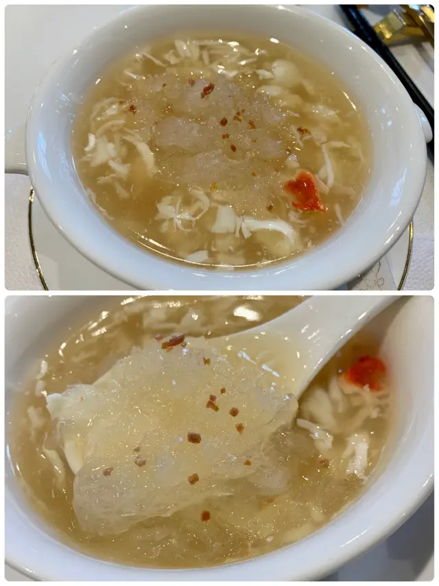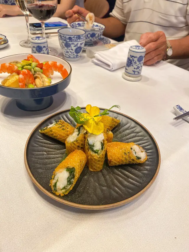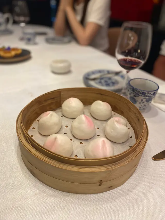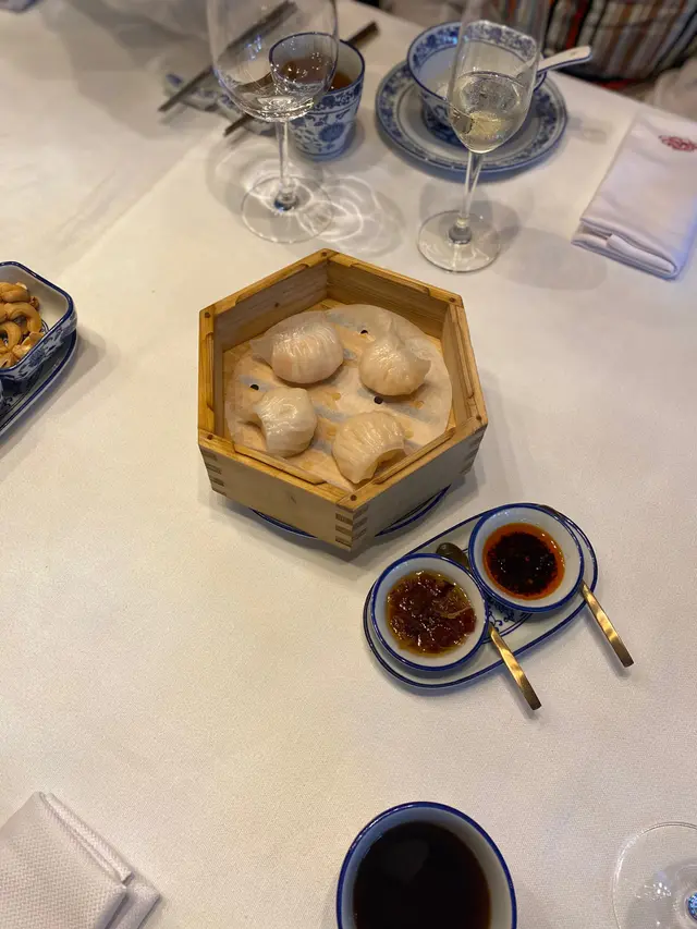 今日立秋,又是我其中一位最重要的親人的生日日子,因為主角最近喜歡上了「和昌飯店」的食物,所以我們特意安排了在這裏為親人慶祝吃生日午餐。「和昌飯店」 位於灣仔莊士敦道,被市建局保育的歷史建築物和昌大押內,擁有1樓及2樓的使用空間。百年的歷史古蹟有一條很窄很高的樓梯,但樓梯只能走到1樓,如要上2樓必須在1樓轉乘升降機或可在大王東街乘座升降機直接到達;地鋪則是一家高級意大利餐廳「Crust Italian」。翻查資料,和昌大押是由4幢相連、設有長廊式陽臺的唐樓組成,樓高四層,建築物已有逾百年歷史,是少數留存的四幢相連陽臺長廊式樓宇;有蓋遮擋的露台,樓底高,設有採光井,通往陽臺處裝有法式大窗。最大嘅特色是和昌大押外牆使用典雅的水磨石工藝裝飾,在香港真的是買少見少,大家經過記得參觀一下👍。親人喜歡這裡的即製點心和高級中菜,雖然我們都不好夜蒲飲酒,但這裏晚上可以是一間酒吧,真是中西合璧。 我們一家人在今年的端午節也來過一次吃午餐,菜式在這食評後半部份一併介紹。今天生日宴共有10人,食物包括粵式點心、燒味、海鮮和特色粵菜等: 點心~紅米海皇脆米網腸($108/6件) 脆米網腸很多酒樓都有提供,這道點心賣的是特色,特別在用紅米打磨成米漿來製作腸粉;~ XO醬煎腸粉($88) 腸粉雖然是用煎的烹調方法,不過一點也不覺油膩;~ 雞仔鹹水角($88/3件) 媽媽最喜歡吃鹹水角,所以必點; 而且這個雞仔鹹水角造型漂亮,雞仔在雀巢內等着媽媽餵食,相當可愛,但最終卻被我們殘忍的吃掉喔🤣;~ 五味醬炸魷魚鬚($108) 用五種味道的醬料醃製後再炸,但其實我吃不出是用什麼醬料醃製?味道有點像椒鹽味,炸漿也相當脆口,美中不足的是魷魚鬚太細條,若用上大條厚肉的魷魚鬚,應該會更好吃;燒味~ 和昌炭燒叉燒($398/共8件)厚切的叉燒又軟又腍, 蜜味有燶邊,肉味濃👅,可以説得上是鎮店之寶, 我們一共點了兩碟,我們10人有16件,實在太好吃我吃了兩件😋😋;~ 和昌片皮鴨($798) 片的方法皮連肉一起,吃下會感到比較乾身,老公喜歡皮帶着多一點肥膏的部份,這隻片皮鴨比我們端午節時吃的燒鵝較好,但也並不太突出;要讚的是裝麵粉皮的蒸籠下面也是放了一大盤熱水,水蒸氣可令麵粉皮保持濕潤 (康怡金公館也是一樣);我帶了鴨殼回家用涼瓜麵豉醬炆煮,家中90幾歲,只剩五夥牙齒的老人家非常喜歡,稱讚燒過的鴨肉非常香,吃剩也不捨得丟棄,竟然吃了三餐😲!海鮮全日主角出場,我們預訂了一隻八斤重的阿拉斯加蟹🦀($6,000),餐廳造成三味餸菜,除了大蟹腳之外,全部拆肉烹調:~ 青瓜粒香芒蟹肉沙律 蟹肉最佳配搭其中一樣是芒果,相信大家應該沒有反對吧,再加上脆口清新的青瓜粒,不失為一道清新又高級的沙律🥗,但我更加喜歡以牛油果🥑代替青瓜🥒喔;~ 蟹肉燕窩羹 以金華火腿上湯作為湯底,每碗都有滿滿的蟹肉和燕窩,再用火腿蓉點綴並提鮮,好味;~ 炭燒阿拉斯加蟹腳 炭燒是我最喜愛的做法,因為我很喜歡炭燒的味道,八斤重的阿拉斯加蟹,蟹腳當然有一定的份量,蟹的鮮味不用多說,嚐到美食就最幸福🥰。蟹腳共有12隻,我們只有10人,那麼年紀最小的可以多吃一隻,好羨慕哦😍,這當然不是我啦,小姨甥敬老請我吃了一半,哇咔咔🤣;~ 游水海中蝦🦐(胡椒蝦)($888/10隻)由於休漁期剛結束,大海蝦不容易找到,所以這個胡椒蝦也只是用了中蝦,蝦肉味鮮彈牙,吃得出這道海中蝦相當新鮮,胡椒的味道又惹味,每人都吃到咀舔舔😋;特色粵菜~ 陳皮醬脆皮雞🐔(688/隻) 整隻雞都去了骨,包括雞翼部份,最初家人看不見雞翼,以為被偷食了呢,哈哈🤣! 油炸過的雞皮帶香,而且肉質非常滑,還有的一些陳皮醬在雞的上面,令這道菜錦上添花,猜不到原來陳皮醬和脆皮雞是這麼合拍,很快就給我們吃光光;不過家人一致認同端午節當天吃的那一隻玫瑰豉油雞比陳皮醬脆皮雞更勝一籌呢👍;~ 上湯蒜子浸時蔬🥬 ($158)這一碟菜心相當嫩口好吃,上湯也是採用了金華火腿上湯, 每次在這裏吃的菜心質量都非常好👍;~ 鮑汁海味美燴伊麵($288) 生日宴當然少不了吃伊麵;~ 壽桃🍑($68/3個) 壽桃也是指定動作,不大不小的壽桃剛剛好,不會令已經吃飽的肚子容不下,還要吃生日蛋糕🎂哦。~ 茗茶(每位$30)包括提供合桃和花生小食,調味醬料XO醬和豆瓣醬。我們在餐廳 2樓一間最大的房間內用膳,房間佈置非常華麗又不俗氣;要稱讚的是餐廳設計在所有出風口下面用板擋住,以避免冷風直接吹向客人的頭部,令客人特別感到舒適;外面露台是可以在晚上把酒言歡的好地方,天氣太熱室內又開了冷氣,所以我們都沒有到露台外感受。******************************以下一些菜式是在端午節當天吃的,又與上述不一樣的菜式:~ 上湯百花魚肚($98/3件)廚師很細心把冬菇、魚肚和蝦丸用竹籤串起,方便客人每人一串食用;冬菇非常厚,魚肚又厚又大,蝦丸有彈性。 家人很喜歡這一道點心,可惜不是在固定餐牌以內,所以生日宴當天沒有提供,確實令大家都很失望; ~ 玫瑰豉油雞🐓($568/原隻) 頂呱呱的豉油雞, 冇骨又滑又有雞味,吃得個個直豎拇指👍,迅速把整隻豉油雞KO;~ 美極煎蝦🦐 ($1,148/14 隻) 蝦夠新鮮,配合美極鮮醬油煎香,非常好吃;~ 肉骨茶小籠包($78/3件)肉骨茶味道不太濃,沒有有太特別的地方, 就是小籠包一個;個人覺得最普通的小籠包已經很好吃, 最重要當然是皮要薄,而且不要弄破,當你用筷子夾起的時候,
