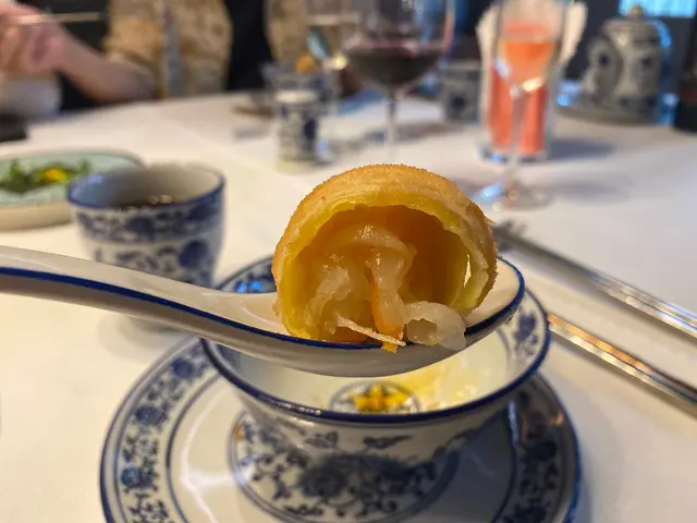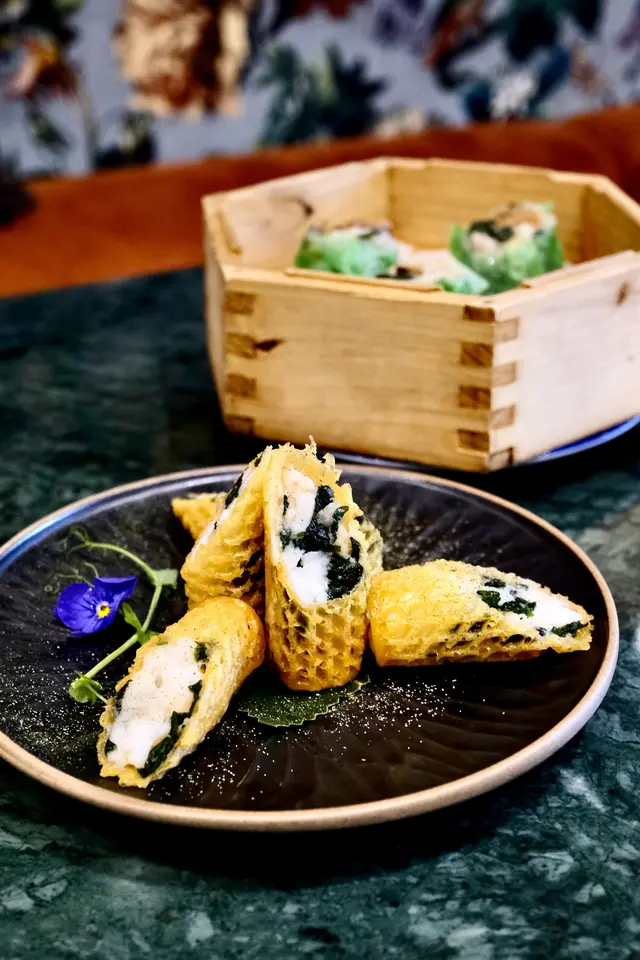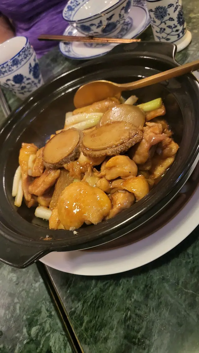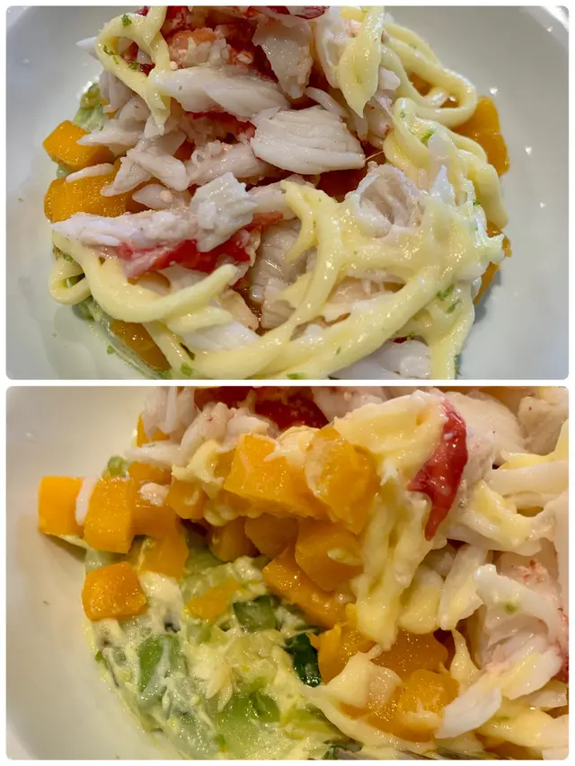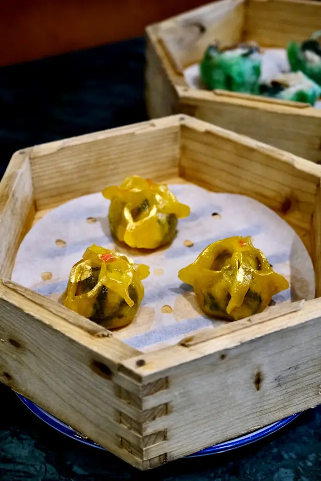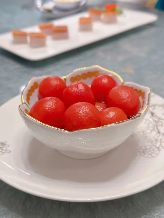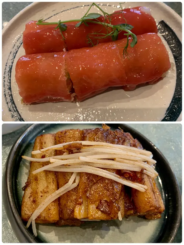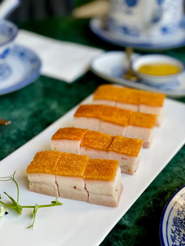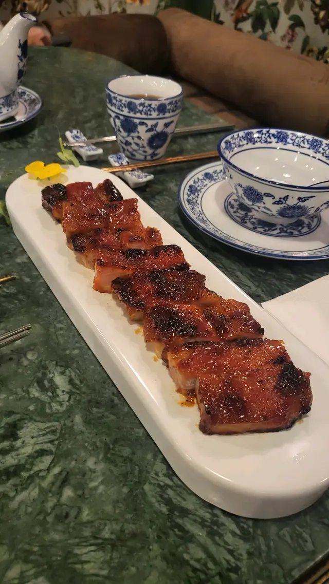 今日立秋,又是我其中一位最重要的親人的生日日子,因為主角最近喜歡上了「和昌飯店」的食物,所以我們特意安排了在這裏為親人慶祝吃生日午餐。「和昌飯店」 位於灣仔莊士敦道,被市建局保育的歷史建築物和昌大押內,擁有1樓及2樓的使用空間。百年的歷史古蹟有一條很窄很高的樓梯,但樓梯只能走到1樓,如要上2樓必須在1樓轉乘升降機或可在大王東街乘座升降機直接到達;地鋪則是一家高級意大利餐廳「Crust Italian」。翻查資料,和昌大押是由4幢相連、設有長廊式陽臺的唐樓組成,樓高四層,建築物已有逾百年歷史,是少數留存的四幢相連陽臺長廊式樓宇;有蓋遮擋的露台,樓底高,設有採光井,通往陽臺處裝有法式大窗。最大嘅特色是和昌大押外牆使用典雅的水磨石工藝裝飾,在香港真的是買少見少,大家經過記得參觀一下👍。親人喜歡這裡的即製點心和高級中菜,雖然我們都不好夜蒲飲酒,但這裏晚上可以是一間酒吧,真是中西合璧。 我們一家人在今年的端午節也來過一次吃午餐,菜式在這食評後半部份一併介紹。今天生日宴共有10人,食物包括粵式點心、燒味、海鮮和特色粵菜等: 點心~紅米海皇脆米網腸($108/6件) 脆米網腸很多酒樓都有提供,這道點心賣的是特色,特別在用紅米打磨成米漿來製作腸粉;~ XO醬煎腸粉($88) 腸粉雖然是用煎的烹調方法,不過一點也不覺油膩;~ 雞仔鹹水角($88/3件) 媽媽最喜歡吃鹹水角,所以必點; 而且這個雞仔鹹水角造型漂亮,雞仔在雀巢內等着媽媽餵食,相當可愛,但最終卻被我們殘忍的吃掉喔🤣;~ 五味醬炸魷魚鬚($108) 用五種味道的醬料醃製後再炸,但其實我吃不出是用什麼醬料醃製?味道有點像椒鹽味,炸漿也相當脆口,美中不足的是魷魚鬚太細條,若用上大條厚肉的魷魚鬚,應該會更好吃;燒味~ 和昌炭燒叉燒($398/共8件)厚切的叉燒又軟又腍, 蜜味有燶邊,肉味濃👅,可以説得上是鎮店之寶, 我們一共點了兩碟,我們10人有16件,實在太好吃我吃了兩件😋😋;~ 和昌片皮鴨($798) 片的方法皮連肉一起,吃下會感到比較乾身,老公喜歡皮帶着多一點肥膏的部份,這隻片皮鴨比我們端午節時吃的燒鵝較好,但也並不太突出;要讚的是裝麵粉皮的蒸籠下面也是放了一大盤熱水,水蒸氣可令麵粉皮保持濕潤 (康怡金公館也是一樣);我帶了鴨殼回家用涼瓜麵豉醬炆煮,家中90幾歲,只剩五夥牙齒的老人家非常喜歡,稱讚燒過的鴨肉非常香,吃剩也不捨得丟棄,竟然吃了三餐😲!海鮮全日主角出場,我們預訂了一隻八斤重的阿拉斯加蟹🦀($6,000),餐廳造成三味餸菜,除了大蟹腳之外,全部拆肉烹調:~ 青瓜粒香芒蟹肉沙律 蟹肉最佳配搭其中一樣是芒果,相信大家應該沒有反對吧,再加上脆口清新的青瓜粒,不失為一道清新又高級的沙律🥗,但我更加喜歡以牛油果🥑代替青瓜🥒喔;~ 蟹肉燕窩羹 以金華火腿上湯作為湯底,每碗都有滿滿的蟹肉和燕窩,再用火腿蓉點綴並提鮮,好味;~ 炭燒阿拉斯加蟹腳 炭燒是我最喜愛的做法,因為我很喜歡炭燒的味道,八斤重的阿拉斯加蟹,蟹腳當然有一定的份量,蟹的鮮味不用多說,嚐到美食就最幸福🥰。蟹腳共有12隻,我們只有10人,那麼年紀最小的可以多吃一隻,好羨慕哦😍,這當然不是我啦,小姨甥敬老請我吃了一半,哇咔咔🤣;~ 游水海中蝦🦐(胡椒蝦)($888/10隻)由於休漁期剛結束,大海蝦不容易找到,所以這個胡椒蝦也只是用了中蝦,蝦肉味鮮彈牙,吃得出這道海中蝦相當新鮮,胡椒的味道又惹味,每人都吃到咀舔舔😋;特色粵菜~ 陳皮醬脆皮雞🐔(688/隻) 整隻雞都去了骨,包括雞翼部份,最初家人看不見雞翼,以為被偷食了呢,哈哈🤣! 油炸過的雞皮帶香,而且肉質非常滑,還有的一些陳皮醬在雞的上面,令這道菜錦上添花,猜不到原來陳皮醬和脆皮雞是這麼合拍,很快就給我們吃光光;不過家人一致認同端午節當天吃的那一隻玫瑰豉油雞比陳皮醬脆皮雞更勝一籌呢👍;~ 上湯蒜子浸時蔬🥬 ($158)這一碟菜心相當嫩口好吃,上湯也是採用了金華火腿上湯, 每次在這裏吃的菜心質量都非常好👍;~ 鮑汁海味美燴伊麵($288) 生日宴當然少不了吃伊麵;~ 壽桃🍑($68/3個) 壽桃也是指定動作,不大不小的壽桃剛剛好,不會令已經吃飽的肚子容不下,還要吃生日蛋糕🎂哦。~ 茗茶(每位$30)包括提供合桃和花生小食,調味醬料XO醬和豆瓣醬。我們在餐廳 2樓一間最大的房間內用膳,房間佈置非常華麗又不俗氣;要稱讚的是餐廳設計在所有出風口下面用板擋住,以避免冷風直接吹向客人的頭部,令客人特別感到舒適;外面露台是可以在晚上把酒言歡的好地方,天氣太熱室內又開了冷氣,所以我們都沒有到露台外感受。******************************以下一些菜式是在端午節當天吃的,又與上述不一樣的菜式:~ 上湯百花魚肚($98/3件)廚師很細心把冬菇、魚肚和蝦丸用竹籤串起,方便客人每人一串食用;冬菇非常厚,魚肚又厚又大,蝦丸有彈性。 家人很喜歡這一道點心,可惜不是在固定餐牌以內,所以生日宴當天沒有提供,確實令大家都很失望; ~ 玫瑰豉油雞🐓($568/原隻) 頂呱呱的豉油雞, 冇骨又滑又有雞味,吃得個個直豎拇指👍,迅速把整隻豉油雞KO;~ 美極煎蝦🦐 ($1,148/14 隻) 蝦夠新鮮,配合美極鮮醬油煎香,非常好吃;~ 肉骨茶小籠包($78/3件)肉骨茶味道不太濃,沒有有太特別的地方, 就是小籠包一個;個人覺得最普通的小籠包已經很好吃, 最重要當然是皮要薄,而且不要弄破,當你用筷子夾起的時候,
