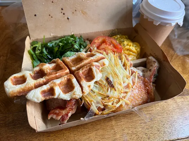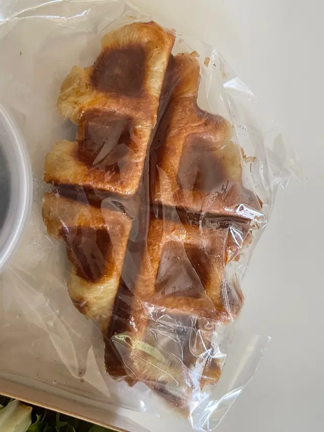 早餐並未有進食,午餐選了較豐富的煙三文魚all day, 藍莓奇亞籽乳酪奶昔。這店以外賣為主,開放式廚房內,兩位店員忙過不停。點餐後奶昔約10多分鐘送上,真材實料,沒添加。 主菜要多等10多分鐘才上,反正不趕時間,可以坐著悠閑的等待。主菜擺放美觀,讓眼睛先欣賞。 三文魚不過鹹。 第一次食牛角包窩夫,覺得有趣,把牛角包鬆脆的質感,外貌變身為窩夫,口感卻又是另一種體驗。…查看更多