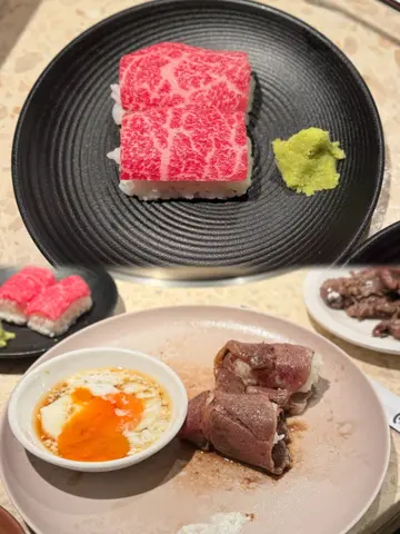 牛肉雪花分布均匀,入口软嫩,香气十足,细致肉质与油脂比例恰到好处,每一口都值得细味。