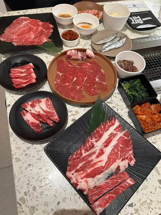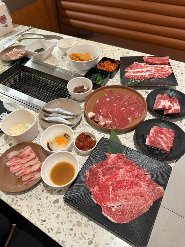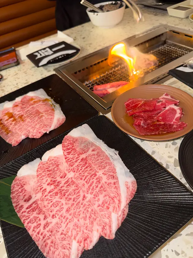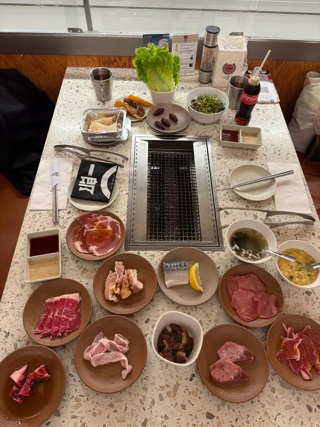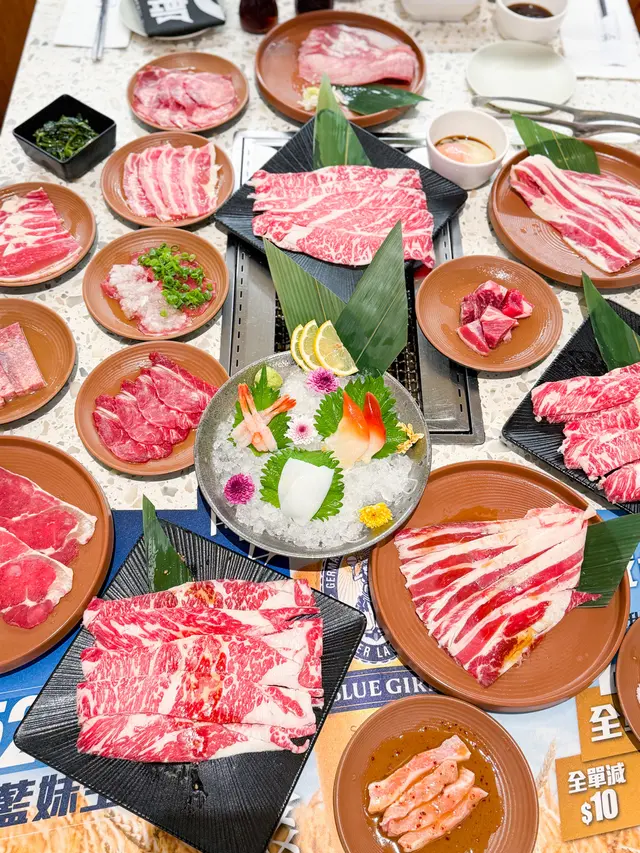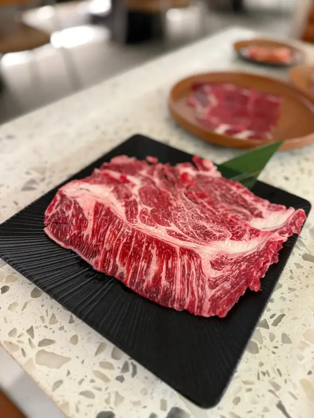 餐廳主打燒肉放題,裝修整潔光亮,座位寬敞舒適,門前放置大大隻牛公仔,非常有特式。這裏是用明火燒烤,抽氣做得不錯,完全沒有油煙味。我們選了「肉禽故縱」燒肉套餐。掃碼點菜,任點任食。餐廳嚴選優質和牛,特設“和牛識別番號”,顧客可以掃描登入認證。燒烤方面:有牛、豬、雞、魚、蝦、海鮮、野菜等多項選擇。燒肉已經醃好,燒起來特別惹味,還有原味、鹽味醬、燒肉醬、味噌醬等不同醃料選項。其中「薄薄炙西冷」、「薄炙牛肩胛肉」、「牛板腱」都值得稱讚,透過專業的切肉法,保留鮮味之餘,能夠平衡肉質感,做到質感/脂肪/肉味比例恰當,口感非常好。除和牛外,其他如「雞腿肉」等,肉質鮮嫩可口,也不遜色。熟食方面:有天婦羅、壽司、燒牛舌、湯、飯麵等,選項非常豐富。其中的「天婦羅龍脷柳」、「天婦羅珍珠筍」,炸得酥脆香口,龍脷柳鮮嫩滑溜,珍珠筍青翠爽口,是不能錯過選項。「酢味噌燒牛舌」,鮮味牛舌,燒得香口,口感爽嫩,點上酢味噌醬,味道更上一層樓。自助吧:多款罐裝及樽裝飲品、醬料、炸蝦、炸雞、味付螺肉、八爪魚、肉燥飯、田園沙律、布甸、提拉米蘇、雪糕、自家製花茶等。其中「炸蝦」、「提拉米蘇」、「木糠布甸」特別出色。由於上菜效率高,用餐時間120分鐘,卓卓有餘,可以吃得非常滿足。…查看更多