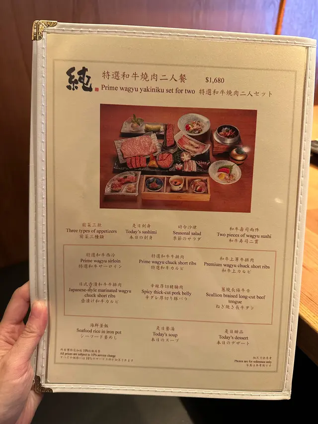 尖沙咀咁多餐廳,今日我哋就揀咗一間好有來頭嘅——和牛燒肉純。這間餐廳是由日本 JA 全農直營的正宗和牛燒肉店,2013 年登陸香港,是首間海外分店,尖沙咀店位於加連威老道希爾頓大廈,主打 A4、A5 頂級日本和牛,食客更可選特定部位,深受和牛迷喜愛 同老公二人世界,邊燒邊食,香氣四圍飄,氣氛好輕鬆,最抵嘅 A5 黑毛和牛拼盤仲有優惠,食到心情都靚晒~🥩 用餐體驗這次在尖沙咀的 和牛燒肉純,我們選了最抵食的 A5特選黑毛和牛肉眼燒肉拼盤。原價 $1680,現在優惠只需 $980,性價比相當高。肉眼油花分佈均勻,燒烤後香氣四溢,入口軟嫩帶微微甘香,油脂在口腔中化開,令人回味。🥗 配菜與飲品• 香辣雜錦泡菜 $88:酸辣度恰到好處,能中和和牛的油膩感,提升整體層次。• 是日沙律 $45/份:清爽簡單,作為配角剛好。• 檸檬梳打 $45:酸香解膩,燒肉必備。• 梅子梳打 $45:帶點鹹香回甘,與泡菜搭配特別合拍。💰 消費最後埋單 $1552,以尖沙咀燒肉店的定位來說,算是合理。尤其是和牛拼盤的折扣,讓整體用餐體驗更值得。🌟 總結和牛燒肉純的肉質確實有水準,優惠拼盤非常吸引。配菜與飲品雖然不是亮點,但在平衡味覺上發揮了作用。整體而言,這是一間適合情侶、家庭聚會、三五知己聚餐、享受高質和牛的好地方。…查看更多