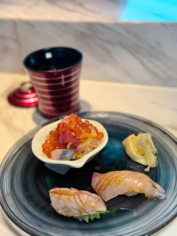 -和缘 · 深秋🍣2月果阵黎食过割烹料理晚餐 当时睇夜景已经觉得好壮观除左因为味道而念念不忘之外 亦都好想日头再黎睇多次正好今次黎食到深秋菜单 鱼生都特别肥美 大满足🤩蒸物 🥚黑松露带子茶碗蒸蒸蛋劲滑 汤汁充满松露同带子甜味香气细腻 食落都好香浓又鲜美 很可以!当日刺身 🐟火炙䲠鱼 — 火炙令原本丰富既油脂爆发 鱼香更突出🐟烧金目鲷 — 肉质细致柔滑 配海苔酱同盐 甘甜鲜味;🐟大拖罗— 超肥美 入口即化 配橘醋同盐食 增添清新每啖都食到鱼脂既温度同甘香 果然秋天必须食刺身😍天妇罗🍤 天使虾 — 炸得香脆薄身 肉质弹口 一咬就虾甜爆出🍤 紫苏叶包䲠鱼 — 香气清爽 鱼肉细腻 紫苏叶减油腻🍤 安纳芋 — 外香脆内软绵 配梅子盐酸中带甜 完美中和番薯既厚重感 呢个炸蕃薯有惊喜!和牛涮涮锅🥩鹿儿岛A4黑毛和牛和牛油花细密分布似霜降 肉质粉嫰柔软 脂香盈满经酱油汤底涮涮 冇繁复既调味 食最纯粹既牛脂香配搭柚子皮同酸汁 微香清新 减油腻感 牛味更突出丼饭、寿司丼饭🍚 吞拿鱼腩、火炙金目鲷同三文鱼籽用紫苏叶既清香 衬托火炙金目鲷做寿司 另有吞拿鱼腩同三文鱼籽饭 浓厚鲜香 鱼油混合饭香 每啖都层次分明 咸鲜平衡甜品 — 是日甜果:梨同香印🌟 和缘名物黎和缘又点少得嗌番佢既名物 以炸海苔做底 酥脆轻盈;上面堆满份量十足既吞拿鱼、马粪海胆、白虾 — 海胆甘甜、白虾绵密、吞拿鱼满口鲜脂 再加红菜头泡沫同淡雪盐点缀 当中既咸、甜、鲜一次过爆开 层次丰富…查看更多