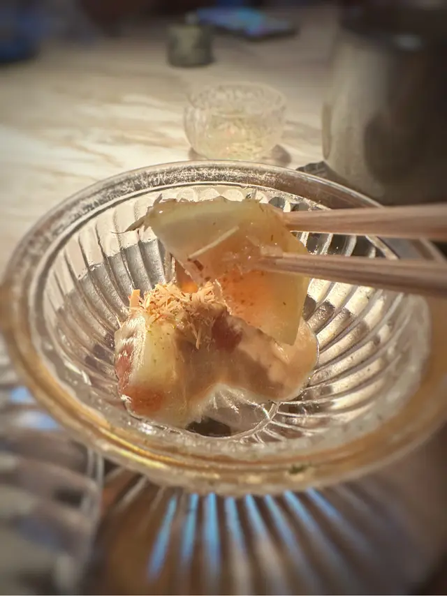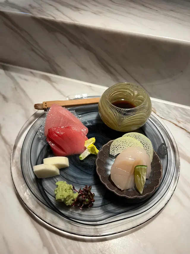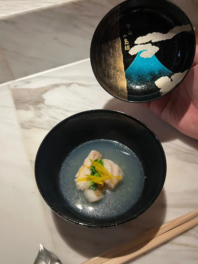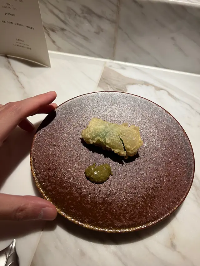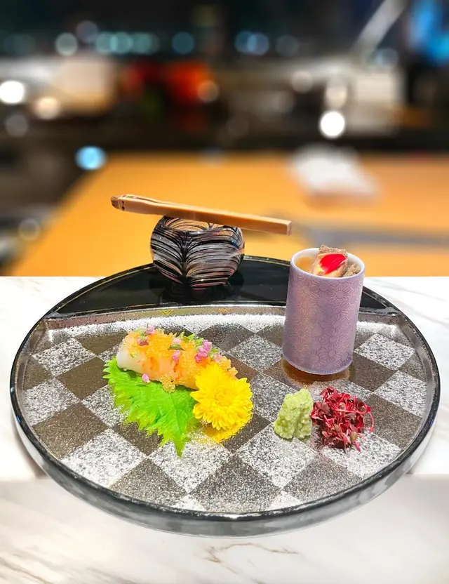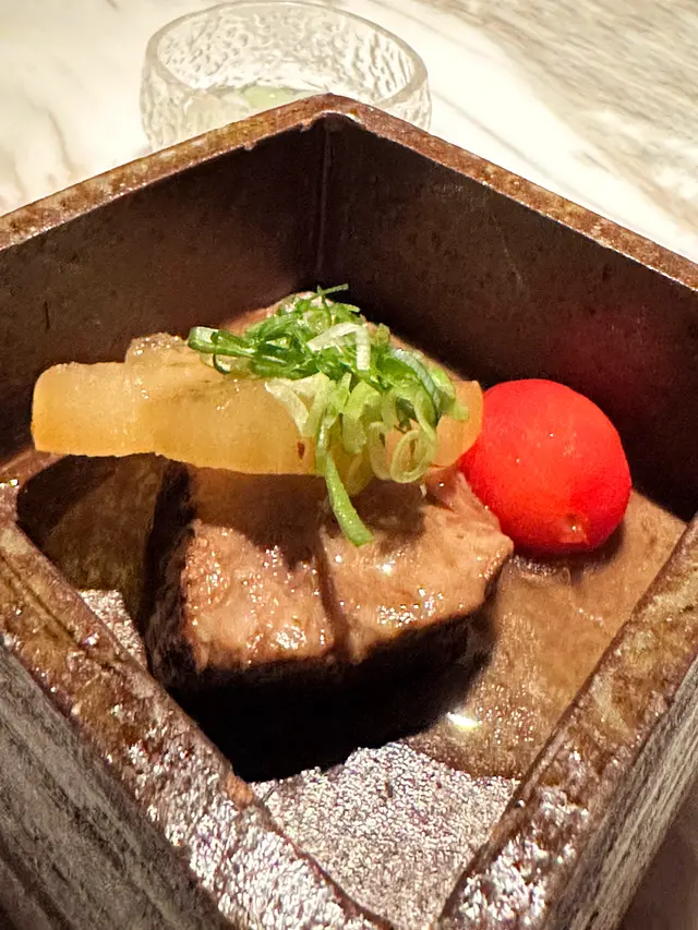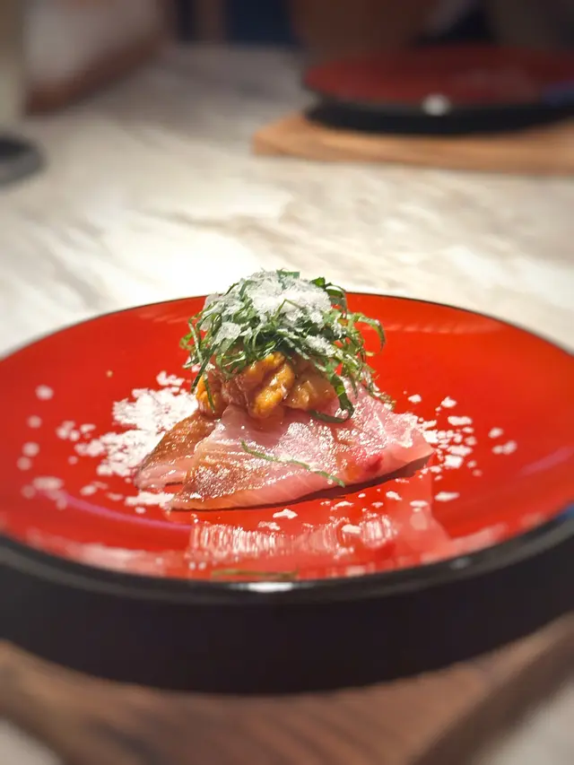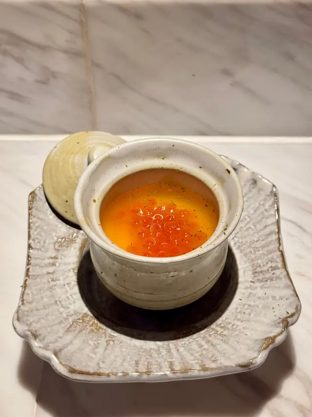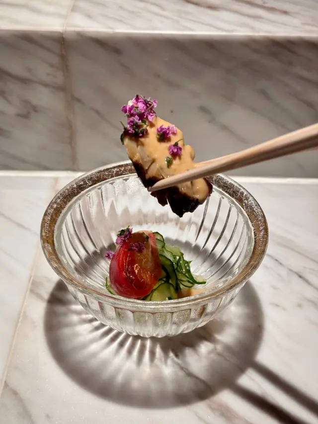▪️ 先付 酒蒸鲍鱼佐蛇腹黄瓜|番茄胡麻醋花穗 清酒香气浸润鲍鱼,搭配脆嫩黄瓜与酸甜番茄,唤醒夏日味蕾▪️ 刺身 极尚时令刺身拼盘 间八鱼软嫩清甜,缀以手作紫菜酱提鲜 炙烧金目鲷油脂芬芳|吞拿鱼赤身与大腹演绎双重脂香交响▪️ 肉料理 A5和牛寿喜烧配蛋黄舞茸 谷中生姜黑豚天妇罗佐醋橘 牛肉裹着蛋液滑入喉间,天妇罗带着姜香清爽解腻▪️ 食事 时不知鲑土锅饭 三文鱼与舞茸共舞,三叶、烧海苔与胡麻撒落其间 揭盖时山海香气扑面而来▪️ 碗物 鳗鱼头与鱼翅熬制清汤 融入莲根、燕菁的清甜,芽葱与青柚子点缀一抹盛夏清新▪️ 蒸物 鳕场蟹茶碗蒸 蟹肉甘甜融入蛋羹,三文鱼籽爆破鲜咸,青柚子香萦绕舌尖✨ 名物 海胆牡丹虾吞拿鱼腩塔 覆以红菜头泡沫,天妇罗紫菜托起层层鲜甜 一口尝尽海洋的馈赠…查看更多