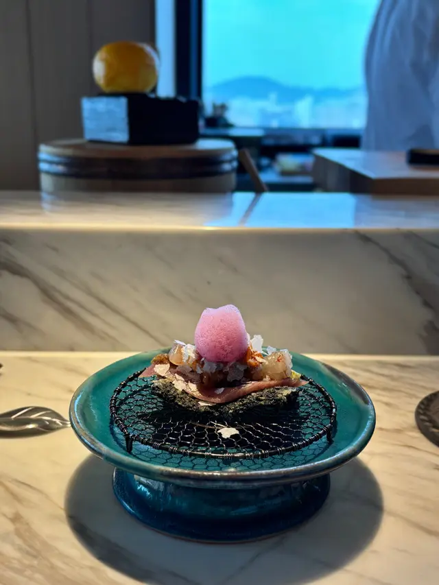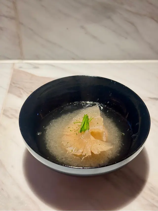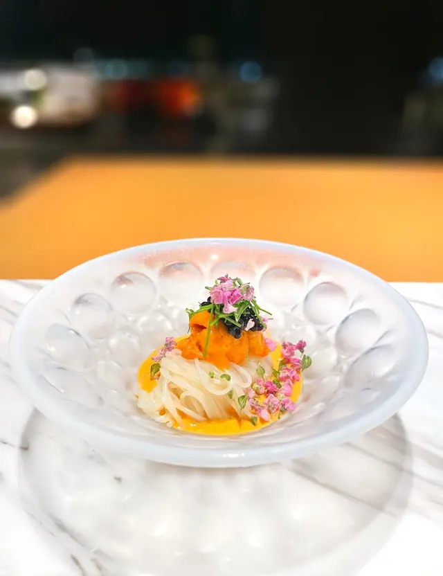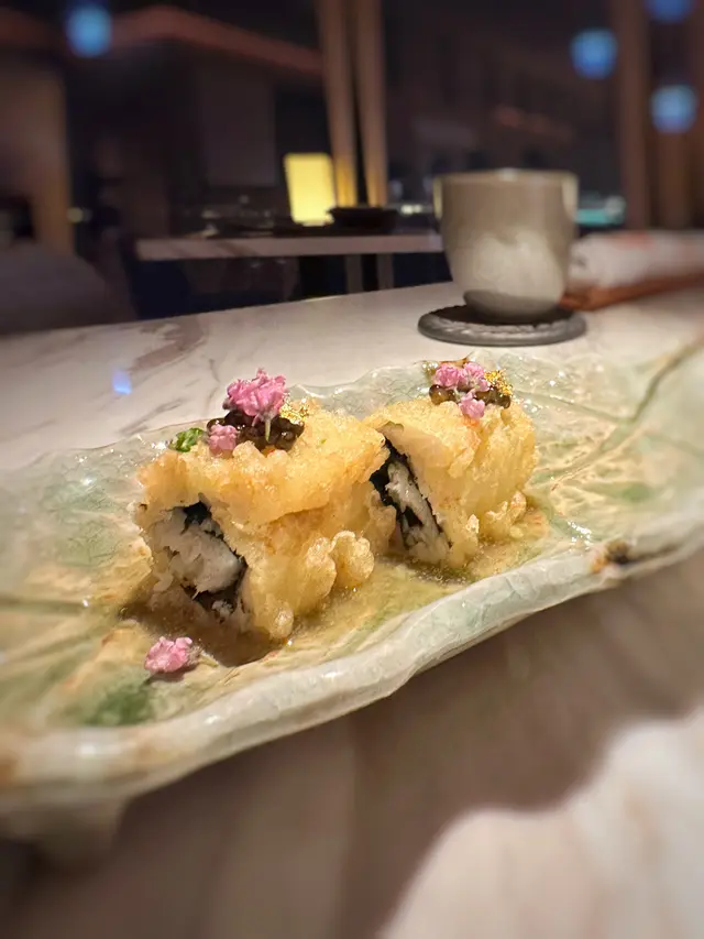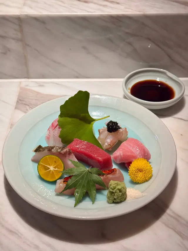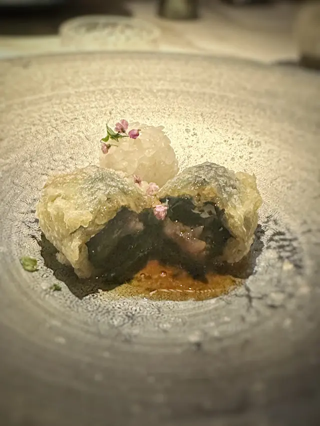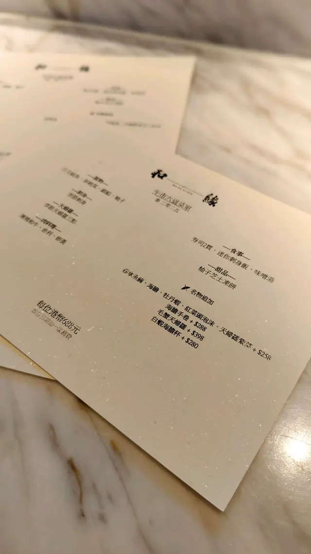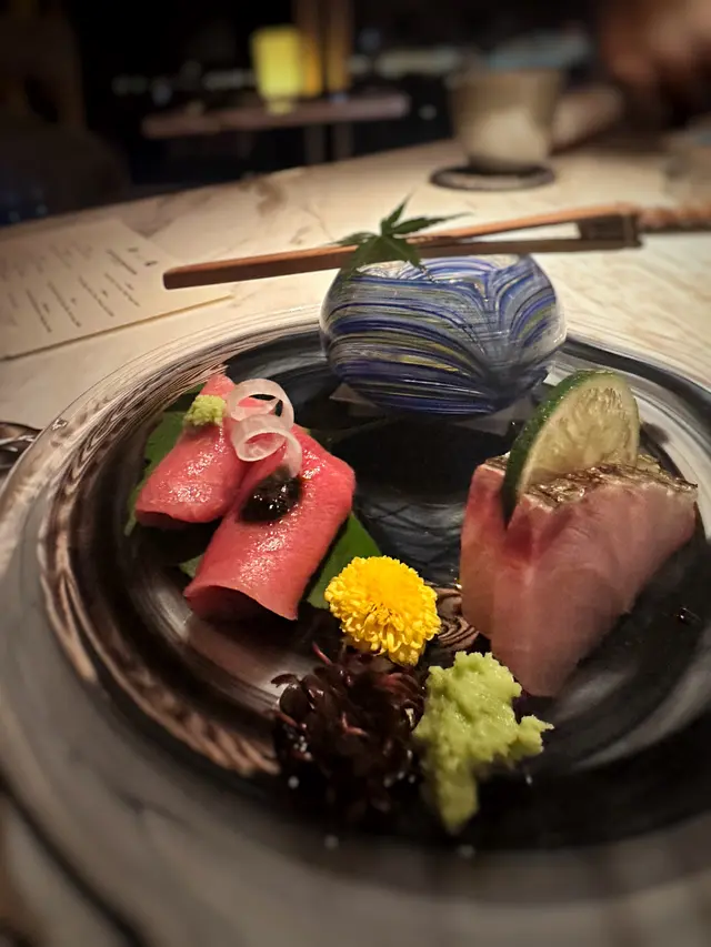 ▪️ 先付 酒蒸鲍鱼佐蛇腹黄瓜|番茄胡麻醋花穗 清酒香气浸润鲍鱼,搭配脆嫩黄瓜与酸甜番茄,唤醒夏日味蕾▪️ 刺身 极尚时令刺身拼盘 间八鱼软嫩清甜,缀以手作紫菜酱提鲜 炙烧金目鲷油脂芬芳|吞拿鱼赤身与大腹演绎双重脂香交响▪️ 肉料理 A5和牛寿喜烧配蛋黄舞茸 谷中生姜黑豚天妇罗佐醋橘 牛肉裹着蛋液滑入喉间,天妇罗带着姜香清爽解腻▪️ 食事 时不知鲑土锅饭 三文鱼与舞茸共舞,三叶、烧海苔与胡麻撒落其间 揭盖时山海香气扑面而来▪️ 碗物 鳗鱼头与鱼翅熬制清汤 融入莲根、燕菁的清甜,芽葱与青柚子点缀一抹盛夏清新▪️ 蒸物 鳕场蟹茶碗蒸 蟹肉甘甜融入蛋羹,三文鱼籽爆破鲜咸,青柚子香萦绕舌尖✨ 名物 海胆牡丹虾吞拿鱼腩塔 覆以红菜头泡沫,天妇罗紫菜托起层层鲜甜 一口尝尽海洋的馈赠…查看更多