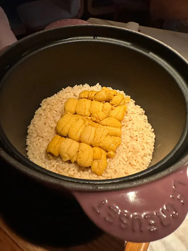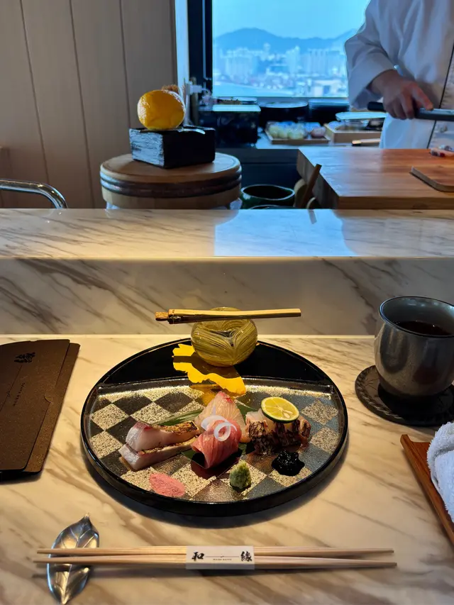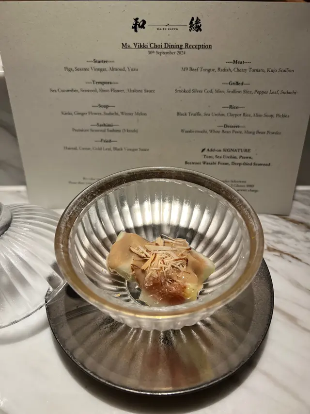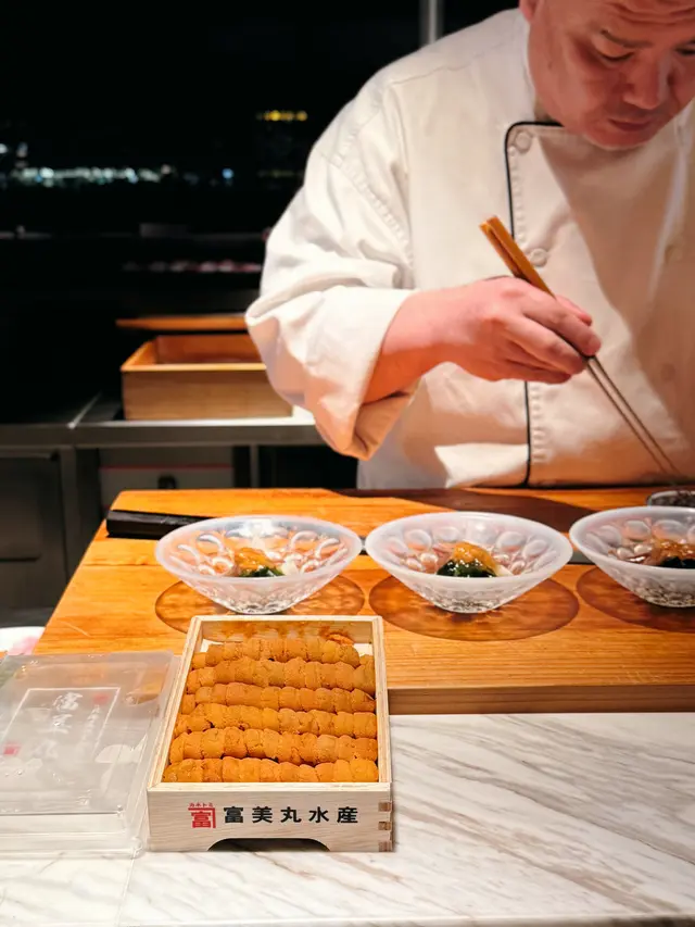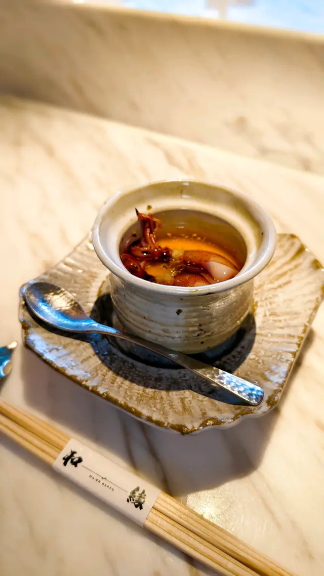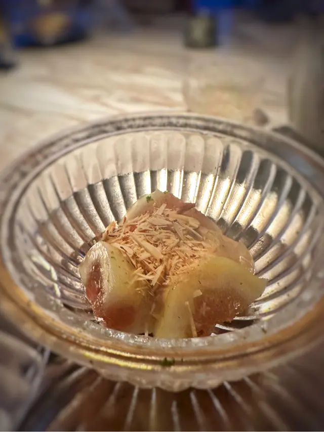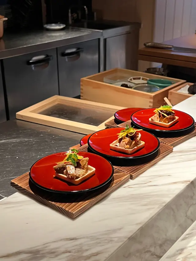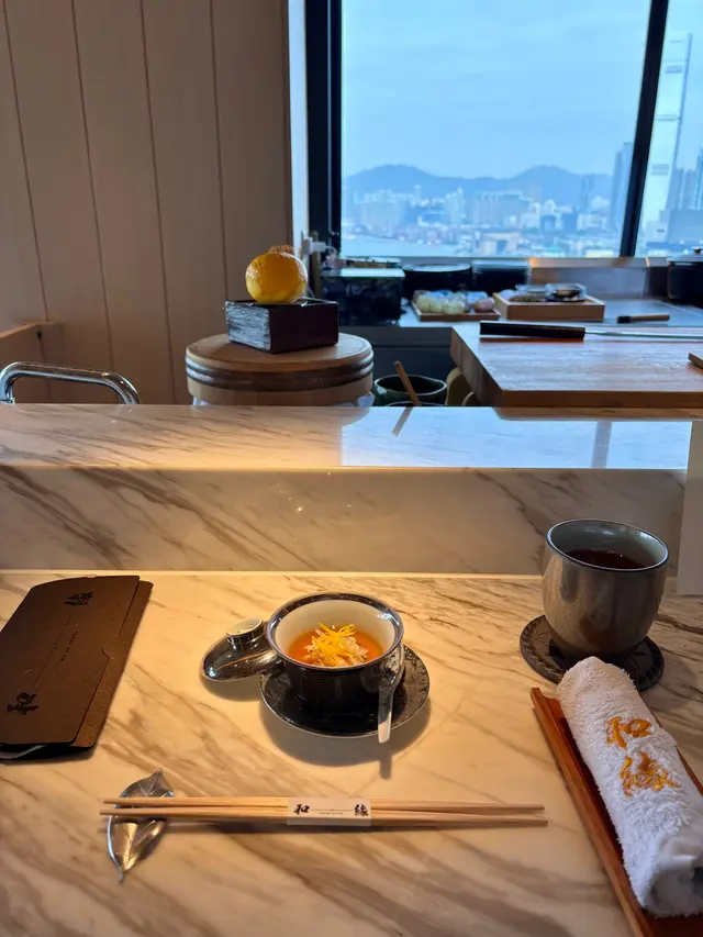 ▪️ 先付 酒蒸鲍鱼佐蛇腹黄瓜|番茄胡麻醋花穗 清酒香气浸润鲍鱼,搭配脆嫩黄瓜与酸甜番茄,唤醒夏日味蕾▪️ 刺身 极尚时令刺身拼盘 间八鱼软嫩清甜,缀以手作紫菜酱提鲜 炙烧金目鲷油脂芬芳|吞拿鱼赤身与大腹演绎双重脂香交响▪️ 肉料理 A5和牛寿喜烧配蛋黄舞茸 谷中生姜黑豚天妇罗佐醋橘 牛肉裹着蛋液滑入喉间,天妇罗带着姜香清爽解腻▪️ 食事 时不知鲑土锅饭 三文鱼与舞茸共舞,三叶、烧海苔与胡麻撒落其间 揭盖时山海香气扑面而来▪️ 碗物 鳗鱼头与鱼翅熬制清汤 融入莲根、燕菁的清甜,芽葱与青柚子点缀一抹盛夏清新▪️ 蒸物 鳕场蟹茶碗蒸 蟹肉甘甜融入蛋羹,三文鱼籽爆破鲜咸,青柚子香萦绕舌尖✨ 名物 海胆牡丹虾吞拿鱼腩塔 覆以红菜头泡沫,天妇罗紫菜托起层层鲜甜 一口尝尽海洋的馈赠…查看更多