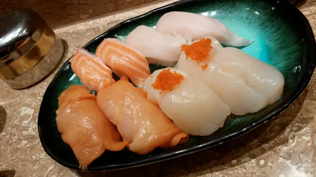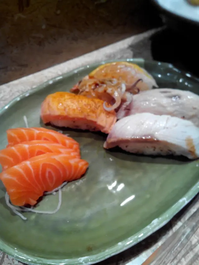 同同事食晚餐, 好多時都與同事講公司八卦, 難得搵到一班人可以談談心。提起和花亭, 轉型再轉型就非上水分店莫屬。難得旺角分店依然固我, 比較上來, 旺角店確實質數比較好。三文魚壽司- 同事們至愛, 每件都是手握, 剛巧出的三交魚都是同一批, 紋理完全一樣, 脂肪比例比魚腩, 但都有漂亮光澤, 水份充足。手握件件都脹卜卜, 壽司飯都算多, 濕潤但粒粒分明, 好味。火炙玻璃蝦- 火炙的方法會比生食刺身多一種風味, 有少少燶香, 蝦並非新鮮, 但蝦味都不錯, 可一試。傾傾計, 食食壽司, 好快又過一晚啦~…查看更多