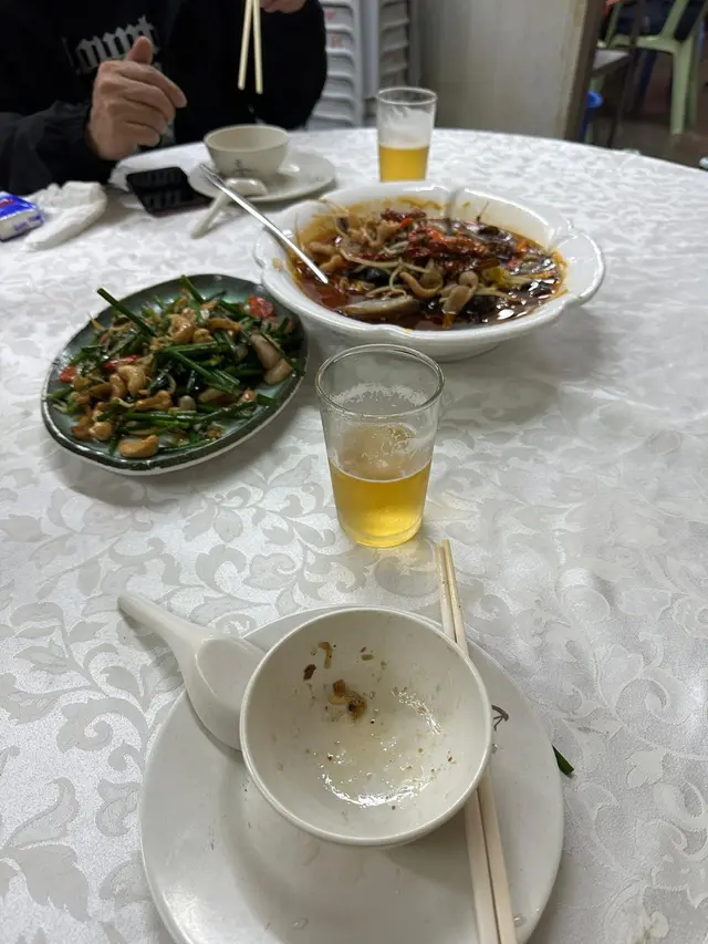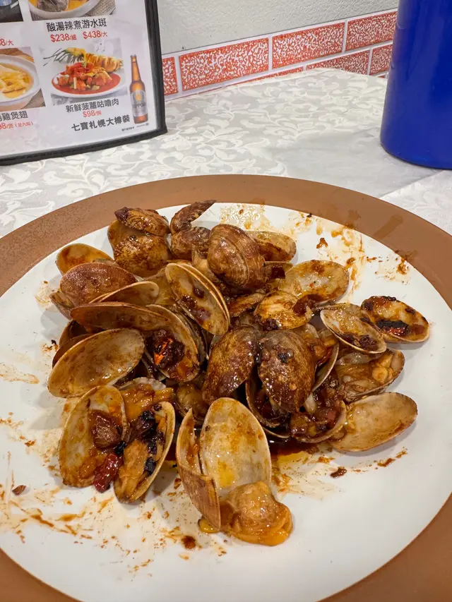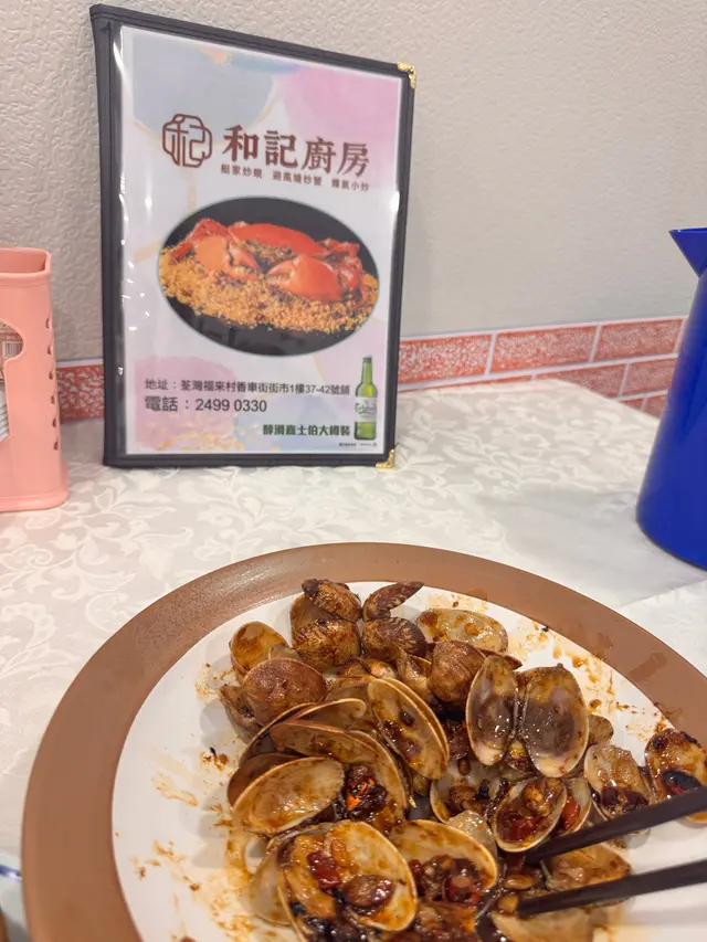 荃灣香居街街市熟食市場尋味之旅!聞説兩界業餘散打王冠軍坐陣,所以慕名而來,還預訂了羊腩煲和雞煲翅!帶埋靚酒和酒杯,約埋好腳一齊去試試看!羊腩煲連皮多肉,煮法和外邊的有些不同,汁也收得比較緊。而雞煲翅足六両翅的,都分到十碗呢!來一個較鑊氣的椒炒蜆和黑椒牛柳粒去送酒,另外還有比較特色的椒麻蝦,炸得很通透,連殼都可以食埋!而拆蟹肉豆苗,完全冇得輸!真真正正的蟹肉扒豆苗來了😚最後再叫了酸菜魚,這餐飯味道很不錯呢!鑊氣夠!果然並非浪得虛名!地方在熟食市場來説也很乾淨,服務也很好!真心推介~有圖有真相,去圖!…查看更多