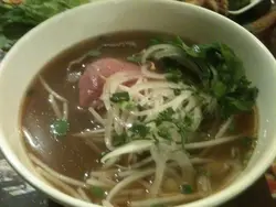 朋友家姐推介这间越南河粉很不错,于是这天与友人决定到此试试...星期六的午饭时间...兼下著毛毛细雨,街上路人寥寥可数,店内只有一两枱客人,不用等位真好!生牛肉河大大碗的牛肉河,第一眼我和友人都不约而同地心谂: 个汤咁深色既?! 单独来说,汤颇浓,有牛味; 可是当配合河粉与牛肉一起吃时,却不知怎的显得不甚协调,整体来说味道一般!牛肉饼河 (走青)牛肉饼颇为弹牙,不错! 只是同样的牛肉浓汤,配上同样的河粉,得出来亦只有同样的不协调! Sorry!牛油鸡翼友人竟然是从未吃过牛油鸡翼的,于是我便兴高采烈地提议叫一客牛油鸡翼,还说了一句: "牛油鸡翼好难可以整得唔好味架!!" 谁知道...立即得以领教!!牛油鸡翼,竟然完全可以没有牛油味!! 而且超级非常劲多油!! 唉~ 建议店主不如索性将其改名为"油油鸡翼"吧了!!想不到我极力推介了如此的一道菜!! 而我朋友第一次吃的牛油鸡翼竟然会是如斯味道,真是可怜啊!!怪只怪我是吃"强记"的牛油鸡翼大的!!自从渣甸街的"强记"结业以后,每一次吃其他的越南餐厅,都会令我很怀念以前的"强记"!!原来最好味的,我都已经吃过了。…查看更多