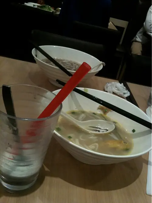 朋友家姐推介這間越南河粉很不錯,於是這天與友人決定到此試試...星期六的午飯時間...兼下著毛毛細雨,街上路人寥寥可數,店內只有一兩枱客人,不用等位真好!生牛肉河大大碗的牛肉河,第一眼我和友人都不約而同地心諗: 個湯咁深色既?! 單獨來說,湯頗濃,有牛味; 可是當配合河粉與牛肉一起吃時,卻不知怎的顯得不甚協調,整體來說味道一般!牛肉餅河 (走青)牛肉餅頗為彈牙,不錯! 只是同樣的牛肉濃湯,配上同樣的河粉,得出來亦只有同樣的不協調! Sorry!牛油雞翼友人竟然是從未吃過牛油雞翼的,於是我便興高采烈地提議叫一客牛油雞翼,還說了一句: "牛油雞翼好難可以整得唔好味架!!" 誰知道...立即得以領教!!牛油雞翼,竟然完全可以沒有牛油味!! 而且超級非常勁多油!! 唉~ 建議店主不如索性將其改名為"油油雞翼"吧了!!想不到我極力推介了如此的一道菜!! 而我朋友第一次吃的牛油雞翼竟然會是如斯味道,真是可憐啊!!怪只怪我是吃"強記"的牛油雞翼大的!!自從渣甸街的"強記"結業以後,每一次吃其他的越南餐廳,都會令我很懷念以前的"強記"!!原來最好味的,我都已經吃過了。…查看更多
