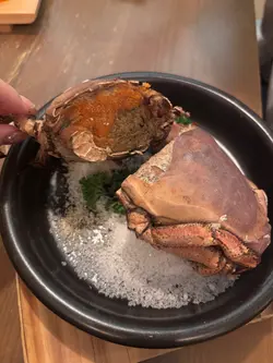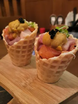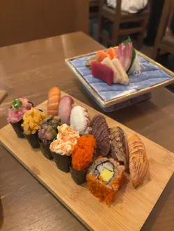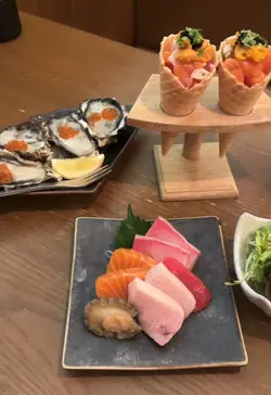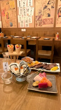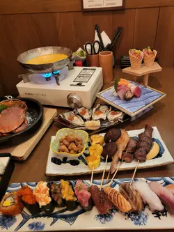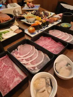 在尖沙咀的居酒屋宫崎和牛,一场美味的盛宴正等待著我们的到来。这里的午市套餐让食客在90分钟内随意享用,简直就是吃货的梦想!(顺便一提,有一些食物是任食的,而有一些菜式则是按人头计算。)。一进门,就被即做手握寿司的香气扑鼻而来。油甘鱼、三文鱼、火炙三文鱼……好像每一种鱼都在呼唤著我!尤其是火炙左口鱼边,那微微炙烤的香味,让人忍不住一口接一口。还有飞鱼籽和海胆鱿鱼,真的是让人惊喜连连!。锅物方面,我们可以选择寿喜烧汤底或日式豆乳豚骨汤。笔者和朋友各选了一款,锅中煮著宫崎A4和牛、北海道米豚和广岛牡蛎,色香味俱全。肉质鲜嫩,简直可以说是肉食者的天堂!。套餐一:帝王蟹脚大渔浜烧拼盘套餐一上桌,帝王蟹脚大渔浜烧拼盘就吸引了我们的目光。首先,和风沙律清新的口感让我们的味蕾瞬间觉醒,搭配著日本A级海胆蟹肉甜筒,简直是海洋的味道在舌尖上舞蹈!接下来的五款大渔浜烧,每一款都让我们惊呼连连。。- 北海帝王蟹脚:肉质鲜甜,让人忍不住再来一块!- 盐烧牡蛎:那种海水的鲜味,彷佛把我们带回了大海。- 金蒜芝麻烧帆立贝:香气四溢,金蒜的味道完美融合,令人陶醉。- 盐烧大虾:大虾的弹牙口感,让我们的每一口都充满惊喜。套餐二:巨型爆膏大头虾串烧拼盘接著,巨型爆膏大头虾串烧拼盘也不甘示弱。牛油果酱冻豆腐沙律,清爽又有层次,让我们的胃口大开。而那6片薄切的日本真鲷,鲜嫩得让人不敢相信!最惊艳的当然是那只10寸的巨型爆膏大头虾,搭配海胆黄金蟹膏酱,简直是视觉与味觉的双重盛宴!每一口都是浓郁的海鲜风味,让我们不禁感慨:“这就是人生的极致享受!”还有那五串特选生烧串烧,焦糖菠萝的甜蜜,千岁米豚腩的香嫩,明太子鸡腿串的独特风味,以及盐烧和牛粒、烧鲜冬菇的完美搭配,真的是让我们忍不住一串接一串!…查看更多