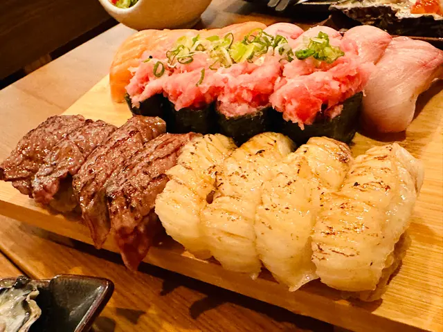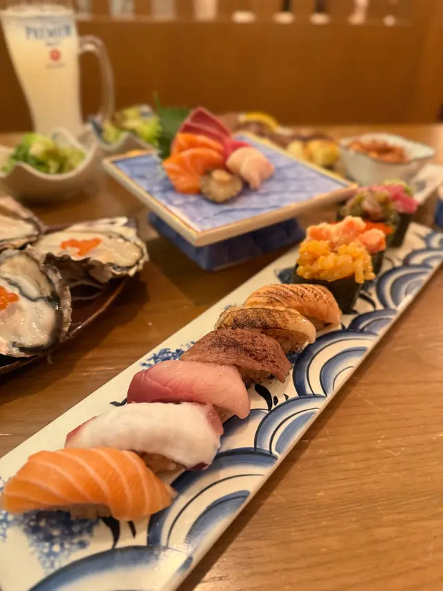 一入門口就有打卡位不過服務質素就非常之差,入座後見侍應好似想去斟茶,但到茶水站一陣又企返回原位,兩位女侍應十分好傾,之後我的朋友相繼入座,依然未見送上茶水,結果還是要我開口問才送上茶水。雖然任食任飲時限為兩小時,但1.5小時就截單,食物需時準備還可理解,但任飲都截單實在過分。如此服務,難怪港人都北上消費。我們一行四人埋單2千幾,埋單後準備離開才發現門口有個遊戲,滿$1000可參與,獎品包括全單半價,七折,及清酒一支。但埋單時沒有通知,既然如此cheap就不要推開此遊戲。人均消費$655包任飲及加一任飲清酒中最好飲就是浜福鶴生蠔是三選一食品之一,但生蠔質素一般海膽刺身筒,刺身鮮甜可口,不過我覺得配雪糕筒有點格格不入,簡單配紫菜就可以任食壽司,質素幾好,最欣賞左口魚,除了火炙和牛,咬不動蟹腳及麵包蟹是二選一,鮮甜可口麵包蟹膏甜美而且非常多,但可惜蟹殼十分堅硬,蟹肉一點都無法品嘗龍蝦湯底任食和牛,牛味濃,脂肪分布均勻,好味任食火鍋生蠔,一般般甜品是豆腐雪糕查看更多
