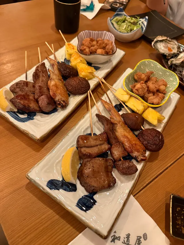 週末的晚上,來到位於尖沙咀恆隆大廈地下的日式居酒屋和道屋WADO Izakaya 和朋友享受happy Friday。呢度環境舒服,店員嘅服務態度亦都十分親切熱情。我地是九點後來的,撞正呢度九點後所有手工串燒,Suntory 生啤同埋日本直送即開生蠔都係半價,基本上都唔使睇價錢,抵食到想食咩都照嗌。平時夜晚唔想去尖沙咀大街或者酒吧同人迫嘅話行幾步嚟呢間旺中帶靜嘅居酒屋享受一下和朋友暢談心事嘅時光都真係一個幾唔錯嘅選擇👏🏻查看更多