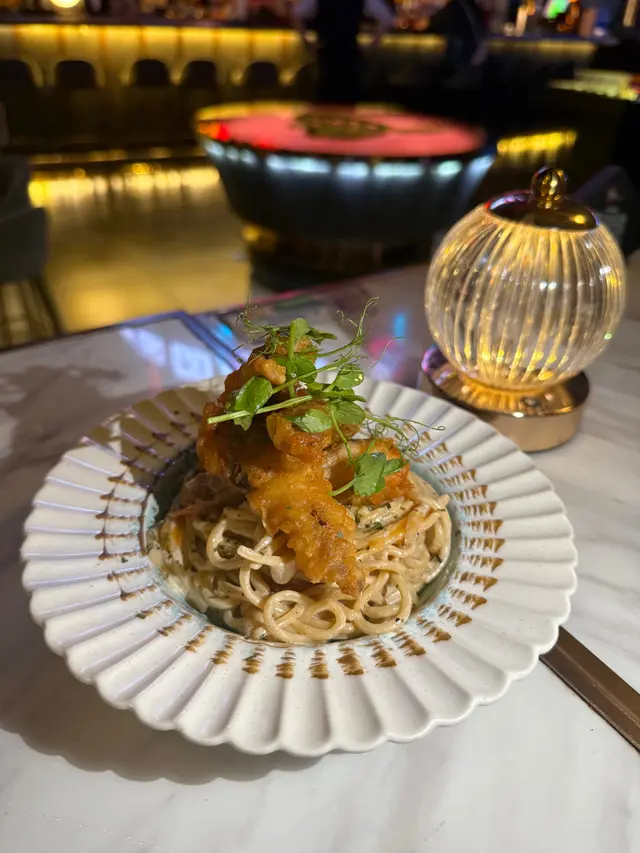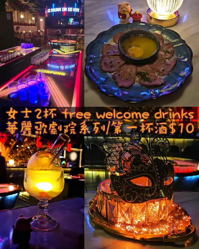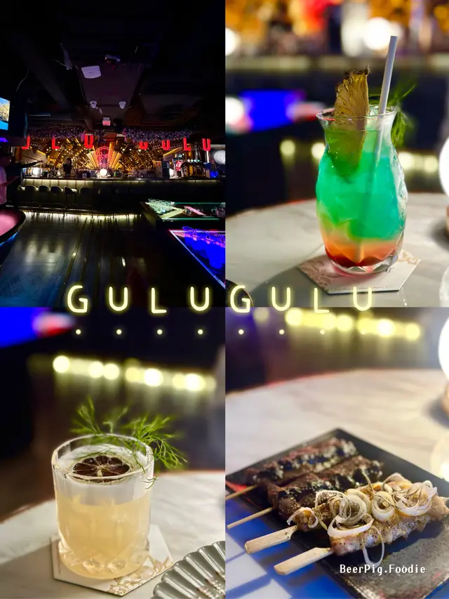 一入夜,酒吧林立既諾士佛台就好熱鬧。如果唔想太嘈吵,想靜靜地又Chill咁飲野、傾下計,樓上酒吧Gulu Gulu咕嚕咕嚕系唔錯既選擇。依度環境舒適,地方都幾大,有桌球打又有live band唱歌,氣氛好好。逢星期二四 9pm後仲有女士免費Welcome drink ,有驚喜🤩雖然系free cocktail都絕對有誠意,Summer Memories 有清甜菠蘿味🍍,感覺好夏日;另一杯系燈泡造型💡,有清新橙香味🍊,賣相靚又好fresh。意猶未盡見到佢哋既signature「歌劇院cocktail」🍹,4款都勁靚,忍唔住叫左杯打下卡。「交際花」好有Phantom of the Opera既感覺,精緻既舞台加上面具,再即場點燃旁邊的裝飾,金光閃閃✨,設計好有心思。以佛手柑甜酒調制的cocktail,入口甘香淡雅,優雅香氣配搭肉類或海鮮都好適合。飲酒配串燒最match, 點了帶子、豬頸肉、山賊牛肋串🥩、日本黑豚腩肉、虎蝦🦐。帶子雪白厚肉,味道鮮甜。牛肋串和豬頸肉充滿嚼勁,肉味甘香;黑豚腩肉油香豐富,跟日本大蔥伴吃更有風味。另外點了軟殼蟹蟹膏意粉🍝,酥炸軟殼蟹松化美味,意粉爽滑彈牙,蟹膏提升鮮味。西班牙辣肉腸意粉,餅底薄脆惹味。風沙咸蛋黃炸雞🍗,一客6件都算幾多。溶化的咸蛋黃包裹無骨雞件,色澤金黃松化,雞塊嫩滑入味。Happy Hour (星期六至四 4-9pm)優惠仲有$10串燒和$10杯紅/白酒、氣泡酒、啤酒或汽水優惠,真心抵呀。…查看更多
