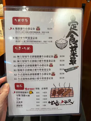 见佢新开 同睇到openrice 食评相 极厚牛舌好吸引 点到黎到 完全同之前啲相唔同完全唔厚 唔知点解分别咁大然后无牛小排 换牛板键 好鞋…88折 但要原价加一 即刻最后平左$3.但个极厚牛舌真系好大出入….无下次。加上女服务员 服务态度麻麻好似黑口黑面咁 连水/茶都唔俾 明明见佢地出餐位有水杯茶杯 同埋冻水/热茶可能88折 当无加一 所以唔俾啦。