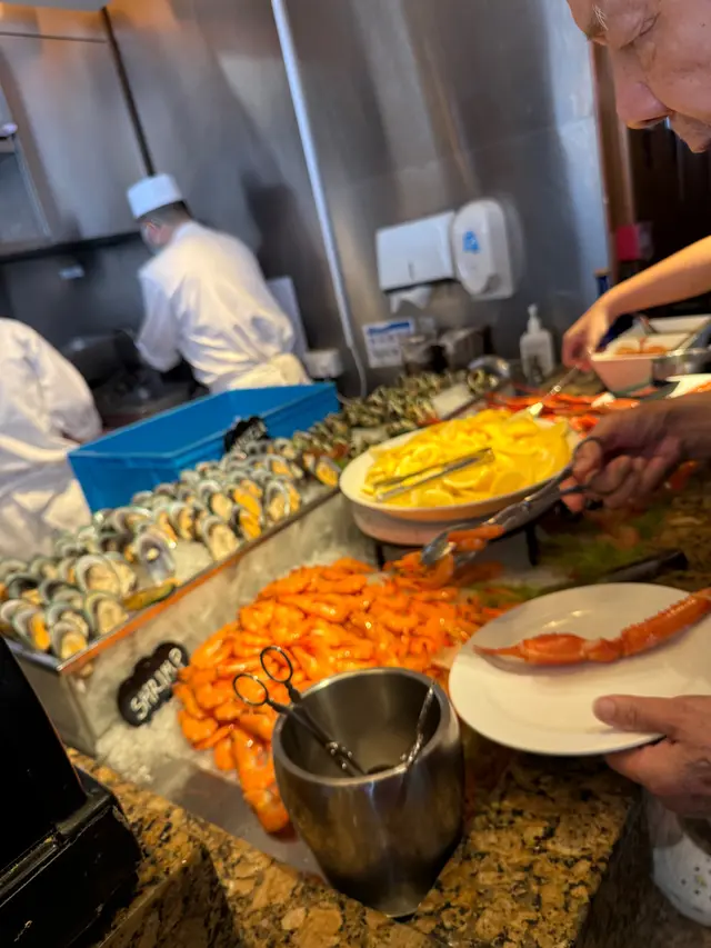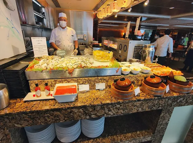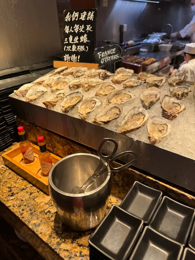 Revisited The Cafe at Sheraton twice for their lunch buffet. .As usual, the oysters and sashimi were fresh and satisfying. My sis tried the mushroom cream soup, and she really appreciated its creaminess.The cold cuts like parma ham, salami and smoked salmon were savoury and paried well with the cheese. Appetizers like tofu salad, century eggs and mala chicken wings were quite appetising.For their hot dishes, the steak was only soso to me. It was not that tasty and felt slightly heavy. However, I really loved their beef tongue, which was extremely tender, meaty and flavourful. The steamed egg was smooth and eggy too.We ended our meal with their desserts, which I appreciated the most. Such a diverse variety and they were definitely delicious. The chocolate cream choux was not as crispy as I imagined, but the rest like crème brulee, waffle, cheesecake were so good.…查看更多