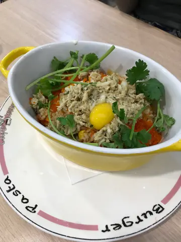 我又黎到粉岭啦。。听讲佢仲有几日就要执但就我𠮶日去其实人流都算高未必系顶唔住疫情 可能只系租约期满去到侍应示意我地先落左单先因为要落单到食野话要等半个钟仲推介左一款菜式 黄油咩咩蟹肉话只系呢间分店先有 好新鲜不过睇真啲其实个名冇黄油两个字( ´▽`)咁到我地坐低大概有五至七分钟左右落埋野饮都系一阵就有野食啦首先黎嘅系佢地推介嘅菜式。。。。虽然明佢放menu嘅相系执过但我地都好无奈点解实物咁唔靓。。捞均佢系好韩式嘅感觉 味道系ok嘅系真系有啲蟹味 应该额外调味唔多大概系唔热嘅石锅饭𠮶种因为捞生蛋 所以食落都有啲痴立立三重蟹肉忌廉意粉有三条蟹柳 蟹子 蟹肉 应该就系三重嘅意思虽然系忌廉 但食落唔漏 偏淡料多 基本上都系啖啖肉Burger话冇哂竹炭包 所以系用waffle包咁其实卖相就好似冇乜特别了芝士唔熔 sosad 菠萝都冇烧过 所以应该焦糖二字系第二度黎?形容味道嘅话 其实菠萝都唔算好甜。。( ´▽`)但整体个burger个味都正常 唔算好出众有两包茄汁 自己决定落唔落但薯条唔脆唔热 应该整定个名叫冇樱桃嘅小丸子本身以为系朋友搞gag 原来系真名( ´▽`)8粒小丸子偏浆 口感唔太好上面有蟹子同松露 味道上系应该有嘅味都有沙律会比较好食 有淋少少黑醋 冇烂菜唔知系咪所有焦糖炖蛋咖啡都会放两粒咖啡豆卖相都算系咁啦( ´▽`)跟主食嘅餐饮原价减18蚊洛神花茶 冇想像中嘅酸 都唔系好甜其实几好饮最后附上单据三个人 虽然碟碟睇落都唔大碟但个份量其实算系咁我地最后都系食剩少少…查看更多