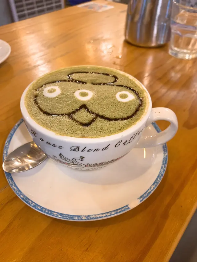 Dup 完骨同朋友揾地方hae 一hae 坐一坐等够钟食饭,佢带左我去附近咖啡湾饮杯野,佢好耐之前食过话几好坐但唔知系咪真系隔左好耐,入到去见间铺好残,凳又少少烂,地下又少少痴立立。不过个抹茶牛奶就ok 床味既,虽然我觉得个拉花唔太似三眼仔