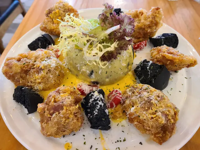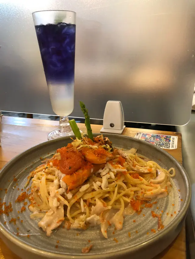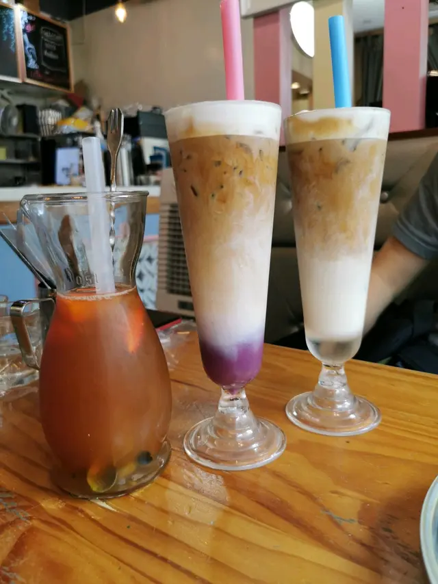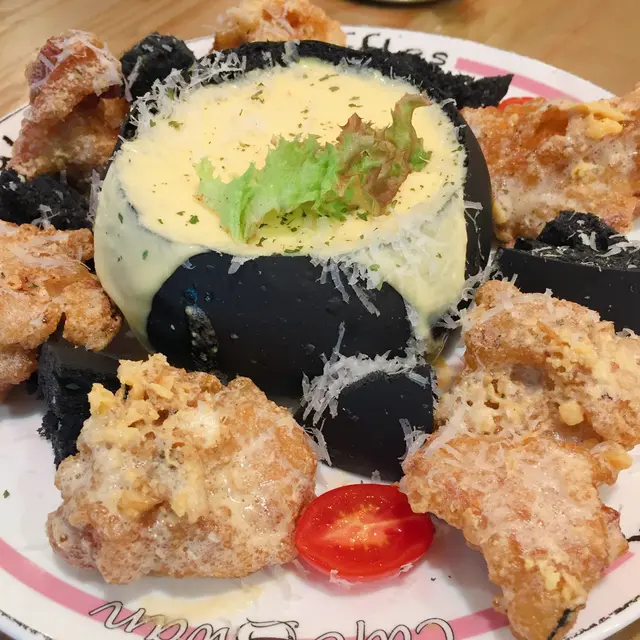 Their cheesy fried chicken looked really attractive. Each piece of chicken was crunchy and juicy and the cheese and egg yolk sauce definitely made it een taste better. Then you can enjoy the bread that was holding the sauce which was amazing.The Butterfly Pea Flower Cherry Blossom not only looked dreamy but it tasted really good, especially the jam/filling at the bottom which was strawberry based with a hint of floral aroma.Despite my first drink, the latte art was too cute to resist. I ordered their limited edition Pandan Flavor. In the past, I found Pandan when too much could ruin the coffee but here they seemed to have found the right balance where the fragrance of the pandan was just there without affecting the coffee. Their latte art appears at random and I am so glad to get this cute bear. …查看更多