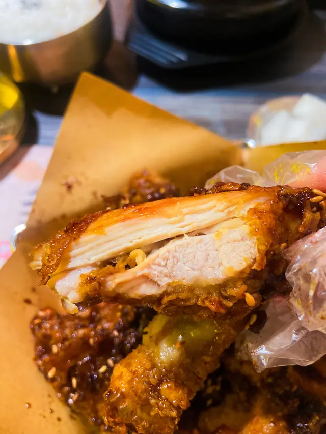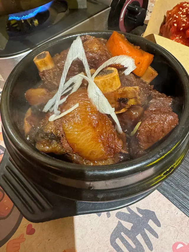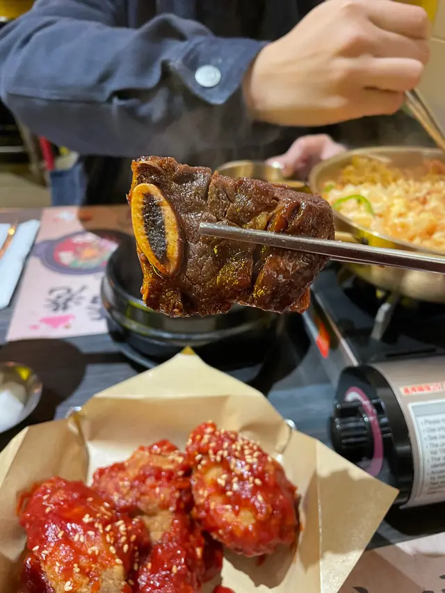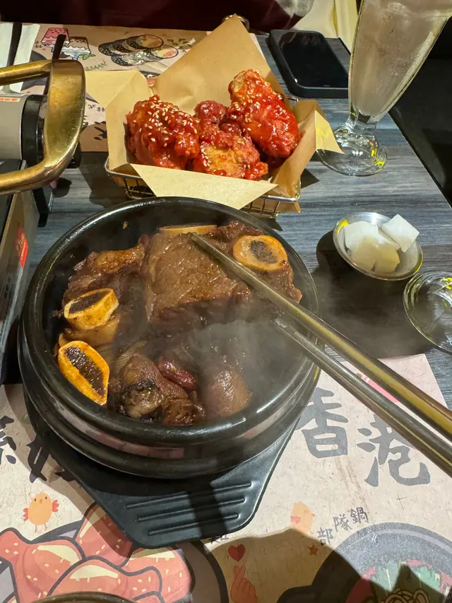 尖沙咀真係好多韓國餐廳機緣巧合下喺IG見到呢間咯咯🐔雞,見到佢啲嘢食好吸引,食過一次返尋味,今晚叫咗另一個朋友介紹佢試😛一開始見佢個餐廳名,以為佢淨係賣炸雞🍗點知原來佢都有好多唔同嘅嘢食😍飯卷部隊鍋牛肋骨炸雞煎餅😋應有盡有!而且都好出色今次我兩個女仔都比較細食,但又想比朋友試曬佢嘅招牌🥹所以我哋決定叫個二人餐😎套餐先四百幾蚊,但已經有齊炸雞部隊鍋牛肋骨同兩杯飲品👍🏻👍🏻炸雞我哋揀咗甜辣口味,雞外脆內軟,一啲都唔會厚粉,而且我估佢應該係即叫即炸,熱辣辣勁脆身👍🏻淋醬又唔會好多啱啱好,唔會好辣,大人細路都啱食~部隊鍋唔使多介紹,午餐肉芝士腸仔辛辣麵必須有!套餐先有呢個迷你鍋,但其實我覺得一啲都唔細🤣🤣兩個人食都夠晒飽牛肋骨簡直係臥虎藏龍🤩完全估唔到佢咁好食😍佢用咗石頭鍋飯嘅煲去裝住,所以好保溫👍🏻入面有六七嚿大大嚿嘅牛肋骨😋煮得好腍好入味好惹味,仲有啲蘿蔔,又係煲到勁腍😋送飯一流!可以食2碗🤣🤣飲品都好正,好大杯,唔會死甜,配埋炸雞💯💯推介士多啤梨乳酪飲🤭餐廳喺馬路旁邊好易搵,門面都幾大間又光猛,坐得都好舒服,唔會同隔籬枱手踭碰手踭🙈🙈服務態度都好友善,主動加水收走啲碟💪🏻同朋友聚會揀呢度就啱晒😎查看更多