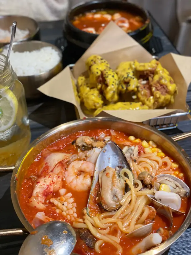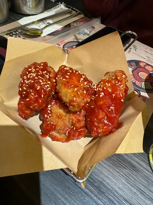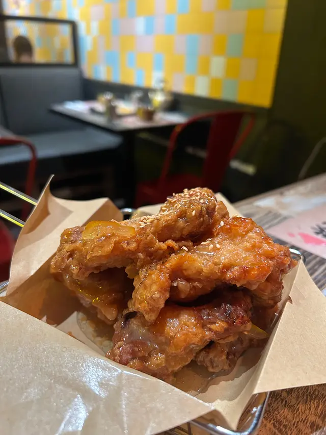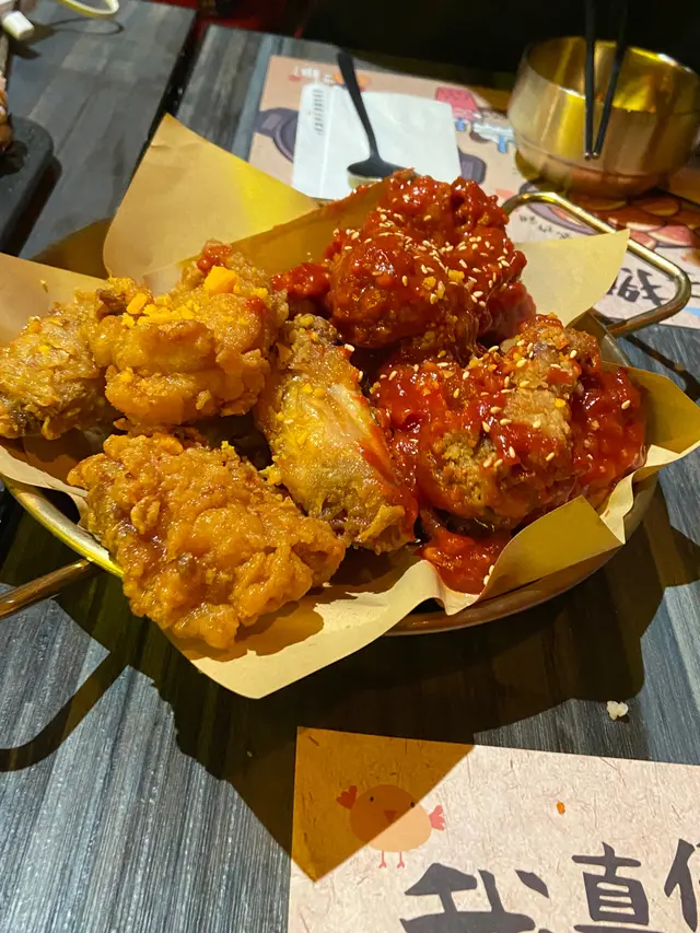 份量少!本來同frd其實諗往食牛角嘅,但無可奈何當時係dinner time,自己又唔記得book位、加上牛角實在太多人等位,行咗一陣,見呢度有位,就選擇咗食咯咯雞。一入到去服務員安排咗我哋入去坐,俾咗一細碟醃蘿蔔我哋開下胃,連芽菜、泡菜呢啲基本前菜都冇,前菜方面比其他韓式餐廳相比少得可憐,見到啲menu其實都多選擇、幾吸引,不過可能期望越大,失望越大。味道好普通,嗌咗半半炸雞——鹹蛋黃味同埋甜辣味。炸雞一上枱嗰下嚇親,勁細份!其他舖頭嘅炸雞起碼都係炸全雞,有唔同部位,有雞胸,有雞髀⋯⋯但呢度剩係得雞翼同埋細雞鎚,一份炸雞,根本就等於其他餐廳嘅兩份炸雞嘅分量。海鮮鍋入邊有即食麵、幾隻蜆、一隻蠔、一隻蝦、幾隻八爪魚,都算係新鮮嘅,蝦肉好彈牙,但係成個感覺上就係普通嘅即食麵入邊加咗啲海鮮。我會覺得同一個價錢,喺附近其他食過嘅韓國餐廳可以有更大嘅份量、更多嘅味覺享受、食物體驗人均$100above 但淨係可以食到1-3件雞翼/細雞槌、幾啖飯、幾啖麵,係完全唔飽嘅,過咗去隔離食車仔麵。成個體驗好失望。查看更多
