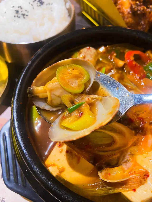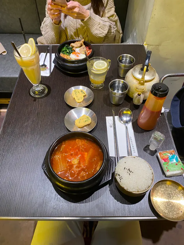 個泡菜豬肉鍋偏向辣但裡面的豬肉真的很少份量,泡菜都唔係特別多。飯既份量就好多,多到突哂出嚟。啲豬肉好薄有啲硬。仲有卷蛋都好甜,好多層,好好味。韓式大水煲湛水真係好有特色。另外,益力多味檸檬特飲都唔錯。查看更多