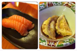 店名:品川日本料理地址:香港仔湖北街16号地下好味指数:7.3/10价钱:$38牛肉月见石锅饭配面豉汤及小食一款(八爪鱼丸)面豉汤温度是暖暖的,称不上很热,但味道是不错的,不会太浓亦不太淡。八爪鱼丸有两粒,炸得够脆,内里软滑,上面布满了木鱼碎,增添风味,略嫌面粉过多。牛肉月见石锅饭份量很大。可是锅子不够热,吃起来没有在吃石锅饭的感觉。牛肉份量挺多,配料有洋葱,三色椒等。牛肉肉质鲜嫩,饭吸变收了牛肉味道变得很入味。由于锅子不够热和没有什么特别,吃久了觉得自己在吃吉野家牛肉饭似的。店名:品川日本料理地址:香港仔湖北街16号地下好味指数:7.5/10价钱:$42下午茶便当A三文鱼刺身 ,厚烧玉子, 炸忌廉薯饼 ,日式咖喱饭 ,三文鱼玉子卷, 沙律本以为是一个大便当,岂料只是一碟碟分开上,就如点了小食般,卖相不够。三文鱼刺身是整个便当最好吃的,三块厚厚的三文鱼,肉质鲜嫩。烧玉子有两块,味道甜甜的,挺特别。忌廉薯饼外皮脆脆的,内里包著忌廉,感觉很creamy,是不错的。咖喱饭味道就像普通的即食咖喱一样,加了薯仔和红萝卜,没有什么特别 。三文鱼玉子卷馅料新鲜,吃上来也是很好的。沙律配合了芝麻酱,非常开胃。 …查看更多