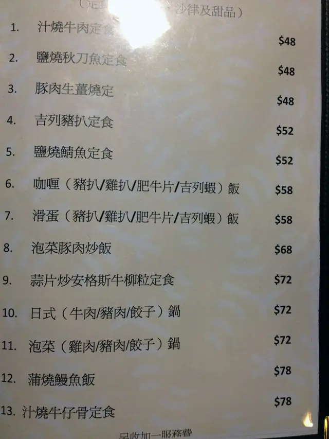 店名:品川日本料理地址:香港仔湖北街16號地下好味指數:7.3/10價錢:$38牛肉月見石鍋飯配麵豉湯及小食一款(八爪魚丸)麵豉湯溫度是暖暖的,稱不上很熱,但味道是不錯的,不會太濃亦不太淡。八爪魚丸有兩粒,炸得夠脆,內裡軟滑,上面佈滿了木魚碎,增添風味,略嫌麵粉過多。牛肉月見石鍋飯份量很大。可是鍋子不夠熱,吃起來沒有在吃石鍋飯的感覺。牛肉份量挺多,配料有洋蔥,三色椒等。牛肉肉質鮮嫩,飯吸變收了牛肉味道變得很入味。由於鍋子不夠熱和沒有什麼特別,吃久了覺得自己在吃吉野家牛肉飯似的。店名:品川日本料理地址:香港仔湖北街16號地下好味指數:7.5/10價錢:$42下午茶便當A三文魚刺身 ,厚燒玉子, 炸忌廉薯餅 ,日式咖喱飯 ,三文魚玉子卷, 沙律本以為是一個大便當,豈料只是一碟碟分開上,就如點了小食般,賣相不夠。三文魚刺身是整個便當最好吃的,三塊厚厚的三文魚,肉質鮮嫩。燒玉子有兩塊,味道甜甜的,挺特別。忌廉薯餅外皮脆脆的,內裡包著忌廉,感覺很creamy,是不錯的。咖喱飯味道就像普通的即食咖喱一樣,加了薯仔和紅蘿蔔,沒有什麼特別 。三文魚玉子卷餡料新鮮,吃上來也是很好的。沙律配合了芝麻醬,非常開胃。 …查看更多