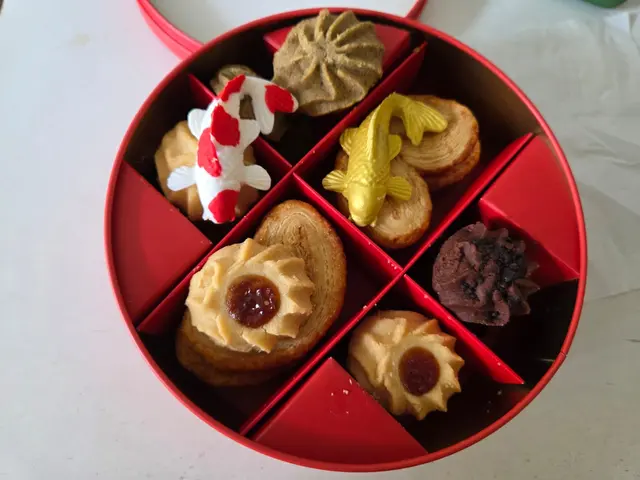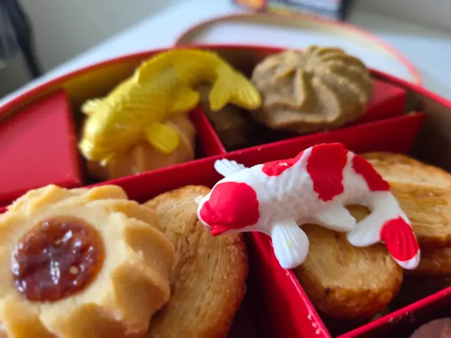 新年期間第一次試呢度嘅曲奇,因為畀佢包裝吸引,點知打開蓋入面仲有兩條錦鯉魚仲陪襯, 特別有驚喜。入面有四款曲奇和蝴蝶酥,款式充足,蝴蝶酥香脆可口,曲奇就牛油味好重,口感有啲似熊仔曲奇,特別佢款朱古力曲奇有朱古力碎味道好濃, 無論包裝和味道都有驚喜,喜歡食曲奇可以試下。查看更多