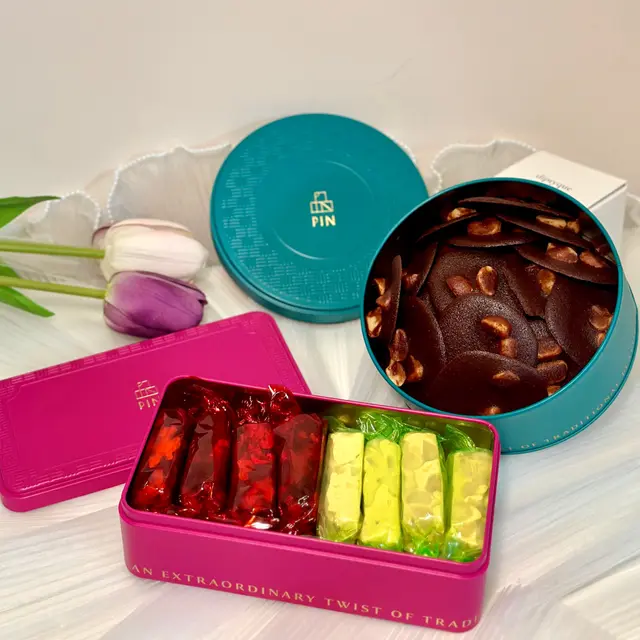 之前朋友送了盒品曲奇PIN 給肥妹,一試難忘碰巧經過IFC,忍不住到店買兩盒作下午茶店內種類繁多,全都是由自家餅房製作包裝很有創意地將傳統粵調味料和食材融入當中例如蝦膏、蝦米、蔥油雞和紅棗等等而且所有產品不含任何色素和防腐劑,食得安心包裝設計精美,色彩繽紛 !聖誕節和新年送給親朋好友都很合適✾ 朱古力夏威夷果仁脆脆 $138濃郁朱古力香味撲鼻而來,令人食指大動每一塊朱古力脆片上放有夏威夷果仁甜度剛剛好,入口鬆脆香口帶堅果香氣完全食不停口,不覺間就吃光光✾ 養生紅棗果仁甜蜜蜜禮盒 $138紅棗合桃薑糖|夏威夷果仁鳥結糖每一粒都是獨立包裝,粒粒都充滿果仁完全不會黏牙和太硬,甜而不膩紅棗合桃薑糖中紅棗清甜中帶薑的微辣夏威夷果仁鳥結糖奶香和果仁香在口中四溢查看更多