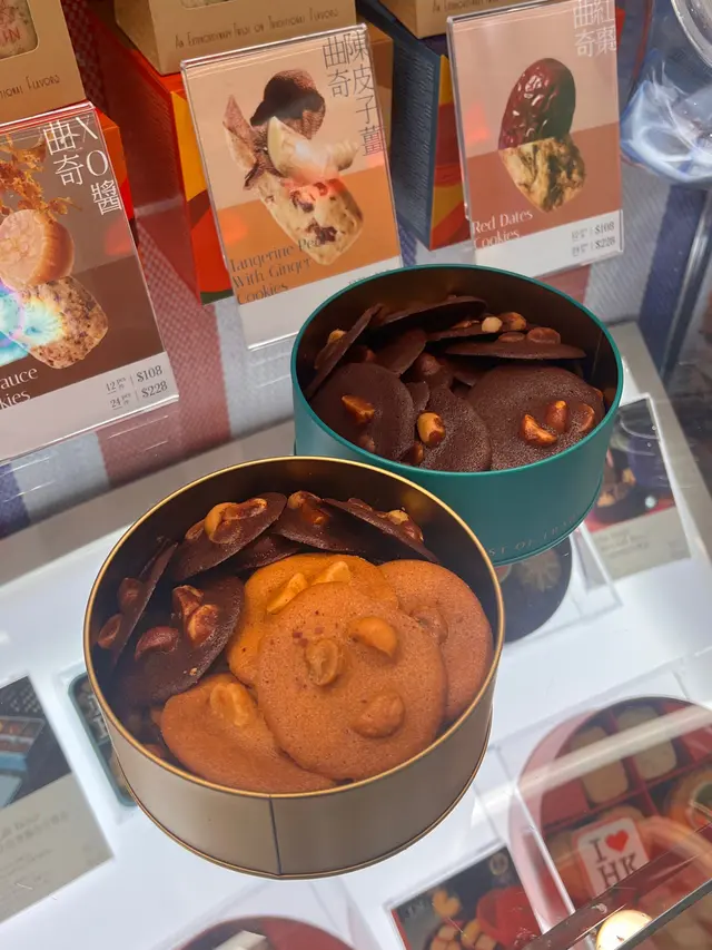 路經見到間店舖好搶眼,充滿香港懷舊風格,而且勁多打卡位📸,原來係香港創立嘅品牌《品曲奇》响旺角開咗新舖,當然要入去朝聖下喇。佢哋有創意之餘,仲好有港式風格,而且口味獨特,同時包裝設計亦好用心。店內好多款式都可以試食,可以試到啱先買;仲有多款得獎產品,好似有夏威夷果仁鳥結糖、原味牛油蝴蝶酥、鹹蛋蝴蝶酥、紅棗曲奇、朱古力果仁脆片等。另外仲有好多創意口味曲奇🤩,例如有:蝦膏、XO醬、蔥油雞、紅棗等,最緊要係不含防腐劑及色素,真材實料👍。無論送禮定自肥都一樣咁正,今次買咗👇:🍪果仁脆脆:有原味及朱古力味,曲奇口感非常香脆,美國果仁超新鮮,朱古力味更於2025獲獎🎖。🍪鹹蛋曲奇:曲奇口感鬆化,鹹蛋味濃郁,港式風格亦甚濃。🍪快樂果醬曲奇禮盒:禮盒內有原味、果醬牛油、果醬朱古力及菠蘿果醬荔枝,曲奇口感同樣鬆化,配合面頭口感QQ不同味道嘅果醬,最鍾意菠蘿果醬荔枝,濃郁甜香嘅菠蘿醬配合芳香嘅荔枝曲奇,創意及味道滿分😋。…查看更多