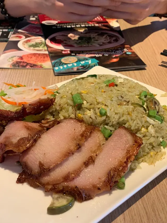 中午到朗豪坊開完會,同事介紹到雅蘭中心吃越南午餐。餐廳空間好大,坐位好舒服,窗邊位可以望到彌敦道。中午我點了青咖喱豬頸肉炒飯,賣相非常吸引!豬頸肉和飯份量很多,豬頸肉很有咬口及燒得很有脆口,味道很香口濃濃的青咖喱味,飯入面有茄子、豆角、蛋青咖喱炒飯雖有點辣,但很惹味十分推介!小食加配了燒雞全翼,有雞槌同雞翼,燒得香口,吃完一隻還想再點多一隻。最後餐飲加配熱奶茶。值得推介,員工態度好友善同好熱情!!查看更多