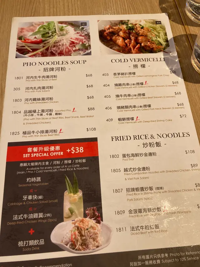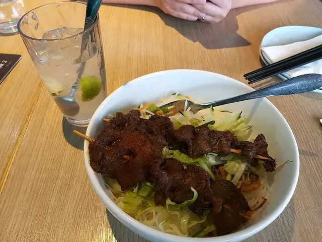 星期六與太太在旺角覆診,同時是難得的二人世界時間,可兩個人食飯。診所在雅蘭中心,於是便揀了這間在雅蘭中心的越南菜。首先我點了牛肉串撈檬。牛肉燒得不錯,不會像很多茶餐廳的牛肉般硬得吞不落肚。檬粉我不喜加汁,淡口便好吃。有些越式餐廳的撈檬濕轆轆的,這一間不會。太太喜歡炸蝦餅,點了炸蝦餅及扎肉湯檬。她點套餐,加了雞翼、菜、及青檸梳打。雞翼及青檸梳打也合格有餘;其實菜也很清新,是沙律茶拼雞肉,惟與餐單上寫的「灼時蔬」有出入,太太不適合食未煮熟的蔬菜,所以都是由我吃下。有點令人摸不著頭腦。埋單二人合共少於200元,環境寬敞,服務不錯,是令人舒服的周末午餐地方。查看更多