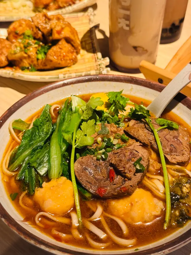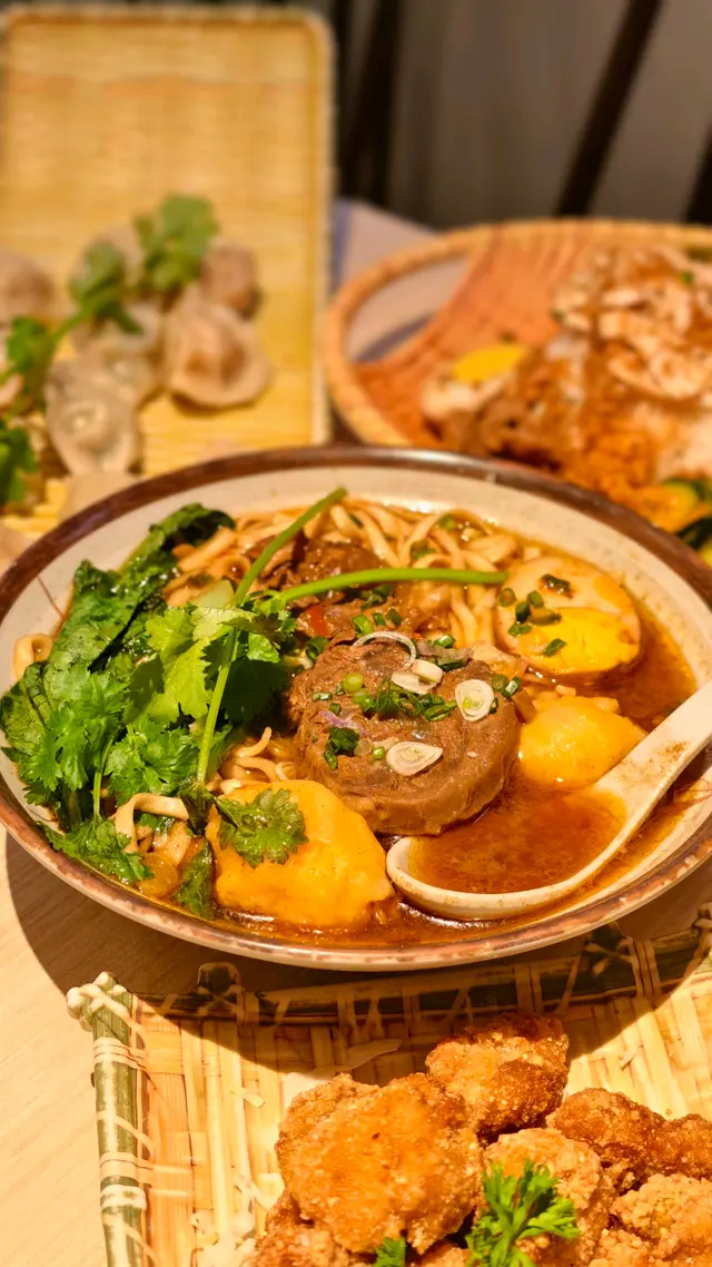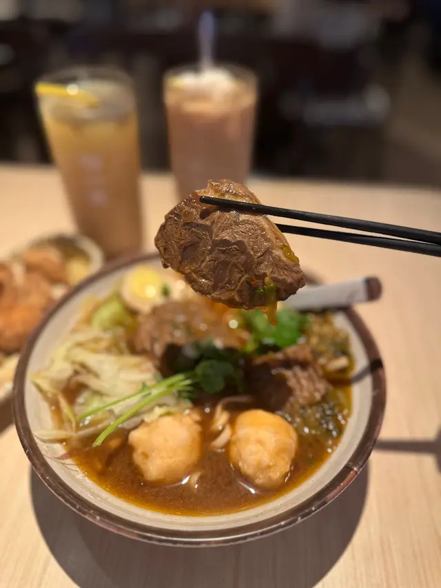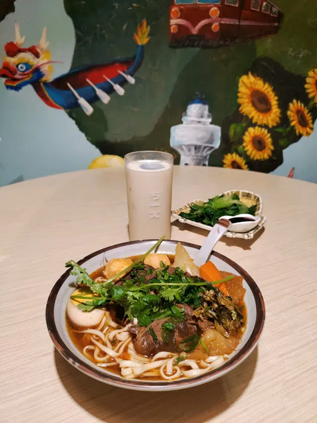 餐廳充滿濃濃的台灣情懷,精心設計的壁畫,花海裝飾,溫暖燈光,打卡位處處。最驚喜是價錢超級親民,不收加一服務費,凍飲吾使加錢。🍲蝦小紅燒牛肉湯麵 湯底濃郁醇厚,牛肉份量足且燉得軟腍入味,麵條吸飽湯汁,風味十足。🍲台式麻油雞湯 一上桌香氣四溢!麻油湯底溫潤滋補,重點是裏面真的有原隻大雞髀,肉質嫩滑,是補身的好選擇。🥟手工餃 餃子皮薄而帶點嚼勁,內餡飽滿。三種口味各有特色,值得一試。🍗香脆豆乳雞外皮炸得金黃酥脆,有微甜的豆乳香,內裡雞肉保持juicy,香口惹味。🥬蠔油時菜 / 香濃麻醬時菜蠔油清甜,麻醬則香濃惹味。🧋鮮榨檸檬椰果益力多清新之選!新鮮檸檬同益力多的微甜平衡,加上Q彈椰果,口感豐富。🧋躺平鴨珍珠豆漿名字趣致,真係有隻鴨躺平了😂豆漿香濃順滑,配上煙韌珍珠,甜度適中。🎂海獺黑冰河畔溫泉消費滿$250,前一日預訂可以免費手繪生日碟,職員畫功了得。預訂時想要「史迪仔」,成品真的超靚超可愛!為慶祝生日增添難忘回憶。海獺係朱古力奶凍,口感超級Q彈,底下是開心果雪花,味道香濃,質感綿密細滑,配上甜蜜的紅豆,煙韌的芋圓,薄脆增添口感。🌟超用心的台灣風情裝潢,餐點選擇多樣、味道地道且價錢親民,免費畫生日碟的服務充滿人情味和驚喜,是慶祝生日的貼心好地方。…查看更多
