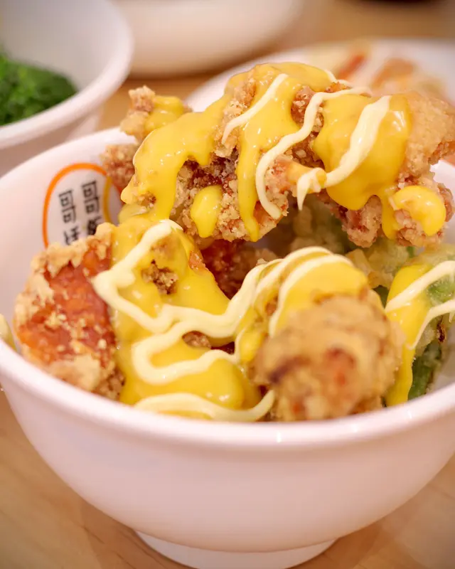 一人份蜜糖芥末蛋黃醬炸雞配魯肉丼碗