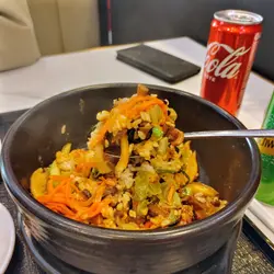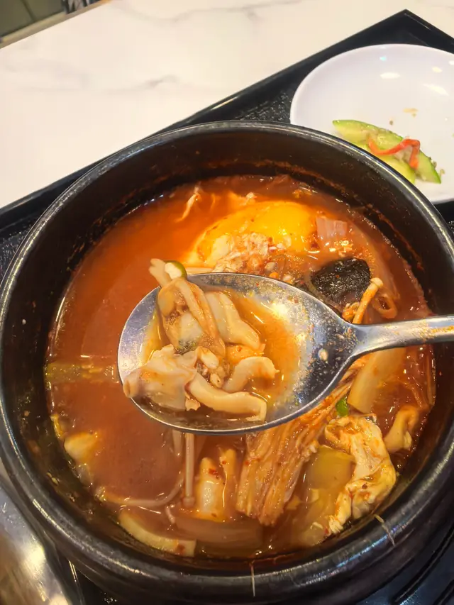 好耐无食韩国菜,是日便到了元朗鸡地间哦吧食下,佢个午餐$58起免加一,价钱真系好抵㗎,加上店舖大好坐立,真系食韩国菜嘅好选择。先扫码落单,店员话电子版餐牌比实体版更多选择,更有小食、凉菜、酒品等。⭐鲍鱼石锅杂锦饭家人点左石锅饭,上枱时热辣辣,一落麻油同辣酱就咋咋声,香味飘出黎好吸引呀🤤中间系切片的鲍鱼,再配上色彩缤纷的蔬菜杂锦,微微嘅饭焦,又香又脆好好味。⭐韩式猪红米肠汤饭自己就点左碗血肠汤饭,汤头好鲜味😋入面除左血肠外,仲有唔少猪肚猪皮等,口感丰富有嚼劲😋加入虾仔同盐提鲜,再加入白饭,一碗暖笠笠嘅汤饭就食得啦,正🤤⭐泡菜煎饼另外仲加左份泡菜煎饼,韩国菜名物嘛😆煎得:香脆,泡菜下得多,酸酸辣辣好正,点埋个酱汁更好味😋⭐罐装饮品午餐送汽水,有可乐、芬达、忌廉可选。好味😋食得好饱呀,大满足👍…Read More