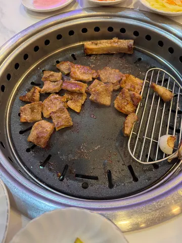 今日同朋友系元朗行街,拣左间韩国烤肉餐厅,呢间餐厅由韩国人主理,而家全程有专人代烧烤,真正完全解放双手,员工服务超级正🫶🏻济洲五花肉+猪肩肉+韩豚调味排骨套餐$620✨济洲五花肉油花均匀,烤得外脆内嫩,肥而不腻,配生菜+泡菜一起吃,超有层次感 ✨济洲猪肩肉肉质紧实带弹性,微焦香味浓,咬下去汁多肉香足,口感比五花肉更有嚼劲 ✨韩豚调味排骨腌制得甜咸适中,肉嫩入味又带炭火香气,味道丰富🫶🏻辣泡菜汤饭$108酸辣醒胃,补充肉食后湿润度,微辣但不呛喉,非常开胃整餐肉质一流,无猪腥味,且有专人代烤,免去烧烤烦恼,食材新鲜,配菜丰富,不论系肉控定系轻食者都满足…Read More