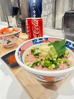 K11求其fing 想食日本嘢又唔想食咁贵就拣咗呢间丼😛❣️炙烧三文鱼明太子丼 $80感觉醋饭豉油比较夹 佢都有沙律拣🥗 酱汁都有蛋黄酱 鲣鱼酱油 沙律汁🥴呢个配搭我最钟意嘅嘢摆埋一齐🔥 三文鱼用嘅位冇乜油脂 一大坺明太子配咩都好食🙂↕️ 劲快就捞完成碗饭🍚❣️葱香吞拿鱼蓉丼 $68❣️三文鱼子 +$24呢个配搭我都好钟意 葱吞拿鱼系不败🐟再加啲三文鱼增添个咸鲜味 成碗嘢更丰富✨呢度嘅选择唔多适合少少人食个快饭~ 质素系OK嘅🙂↕️