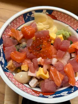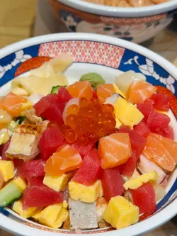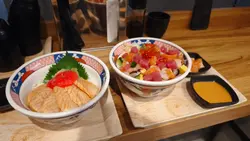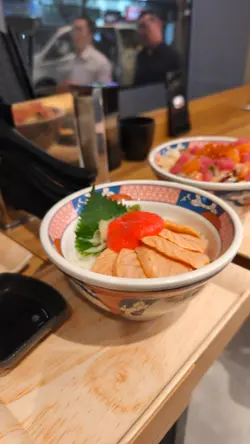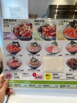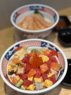 餐厅位于尖沙咀K11商场外围,位置方便。环境走日式快餐风格,简约干净,除咗可以拣普通寿司饭或者白饭做饭底,仲可以加钱转沙律,或者加配其他配料,可选自己喜欢的口味去搭配。🍚 招牌大盛海鲜丼「大盛海鲜丼」绝对系性价比之选。非常丰富嘅角切鱼生饭,里面有齐吞拿鱼、三文鱼、带子、三文鱼籽、甜虾同八爪鱼等多款海鲜。刺身新鲜,份量十足,捞埋醋饭一齐食,口感同层次都好丰富。仲可以加$12配只温泉蛋,捞匀嚟食更加滑溜满足。如果想食得更丰富,可以考虑加$18升级做套餐,跟埋沙律同面豉汤,咁就更加完整抵食。葱香吞拿鱼蓉饭葱花同吞拿鱼蓉捞到匀循循,饭粒干爽唔黏口,滴两圈日式甜酱油,捞匀一啖放入口——鱼蓉香滑葱花脆,食完仲想舔匙羹!🐟 三文鱼籽三文鱼籽晶莹剔透爆汁,味道同口感都相当唔错。🐙芥辣八爪鱼八爪鱼仔爽脆弹牙,蘸满呛鼻嘅日式芥辣酱,一食醒神冲上脑!呛劲过后系海洋嘅鲜甜,刺激开胃,系绝佳嘅餐前小食,食到眼水出先够过瘾!🦑蒜香墨鱼仔墨鱼仔够饱满,蒜香够浓烈!食落咸香鲜美。…查看更多