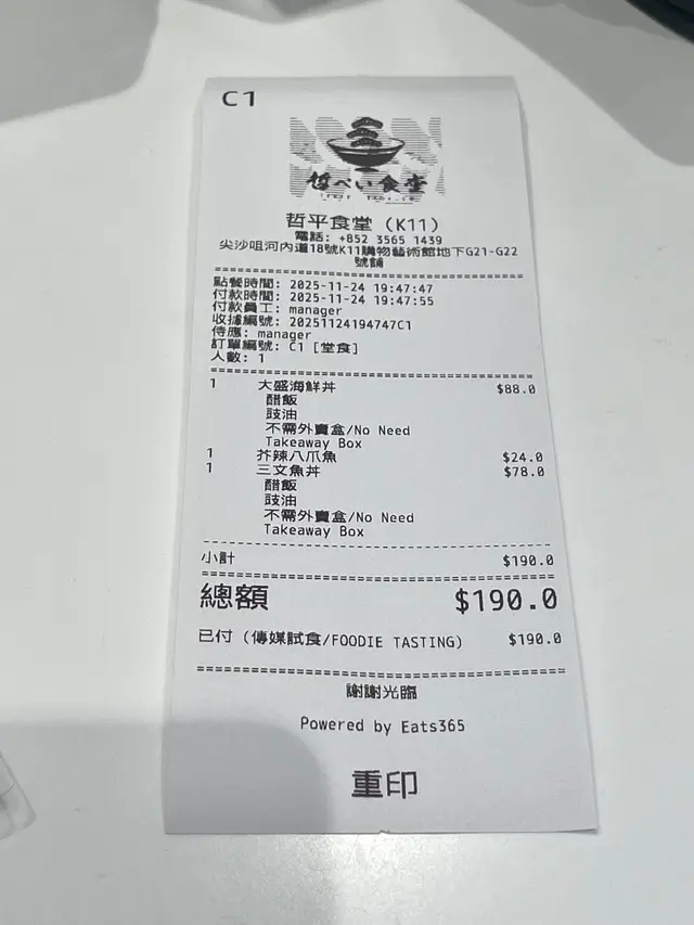 哲平食堂 (尖沙咀) 网址: https://s.openrice.com/QrLS0FeOD00 地址: 香港尖沙咀河內道18號K11購物藝術館地下G21及G22號舖 电话: +852 35651439